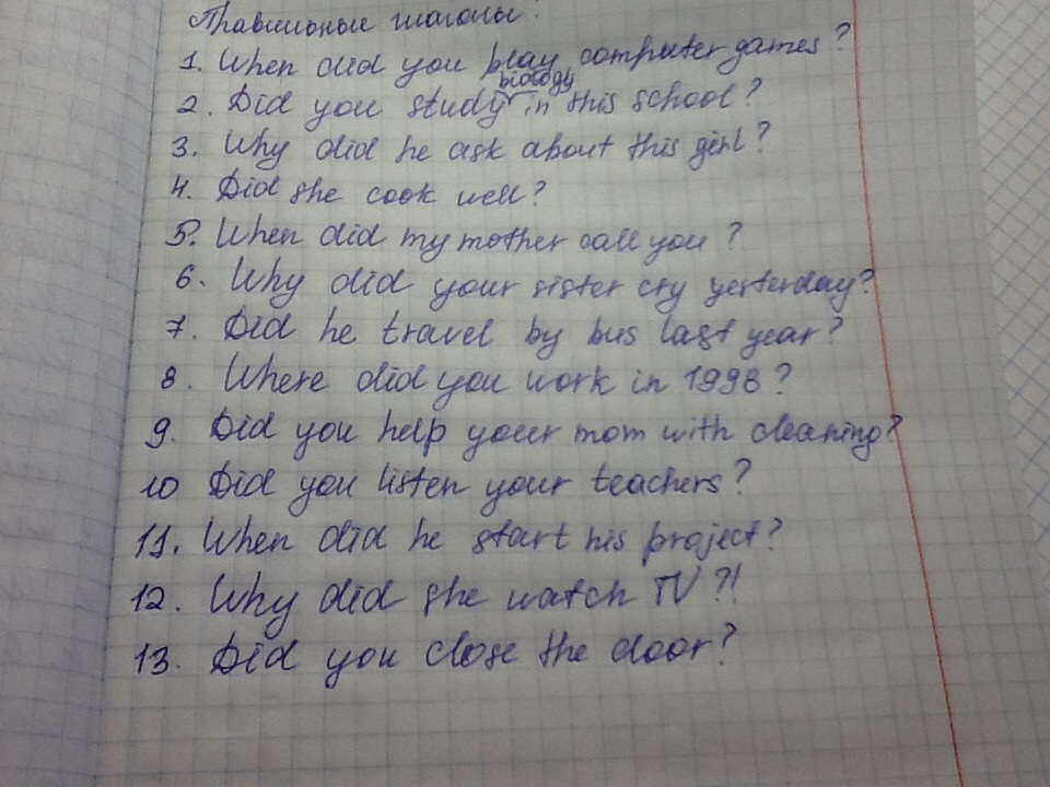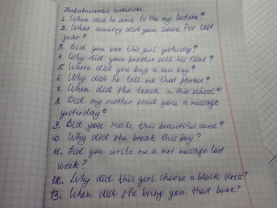 Составить 26 вопросов в Past Simple (13 с неправильными глаголами, 13 с правильными).