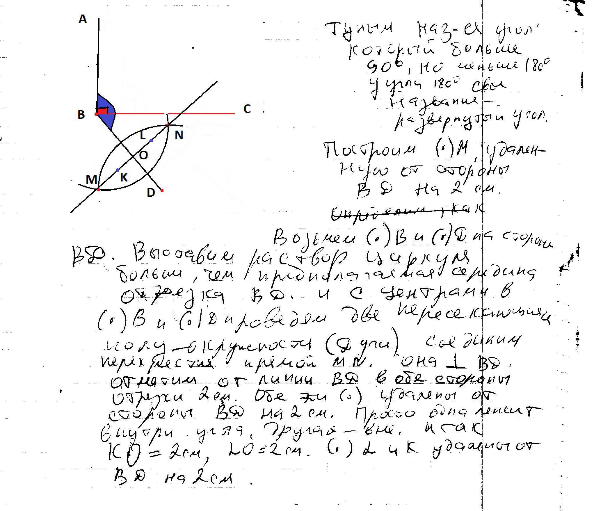 Сформулируйте определение тупого угла. Постройте тупой угол любой величины . Внутри этого угла постройте точку М ,удаленную от его стороны на 2 см.