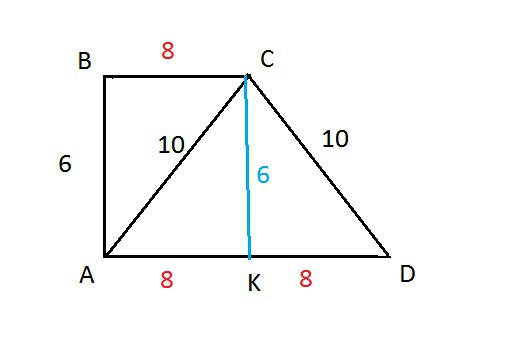 АК²=АС²-СК²=10²-6²=100-36=64=8²