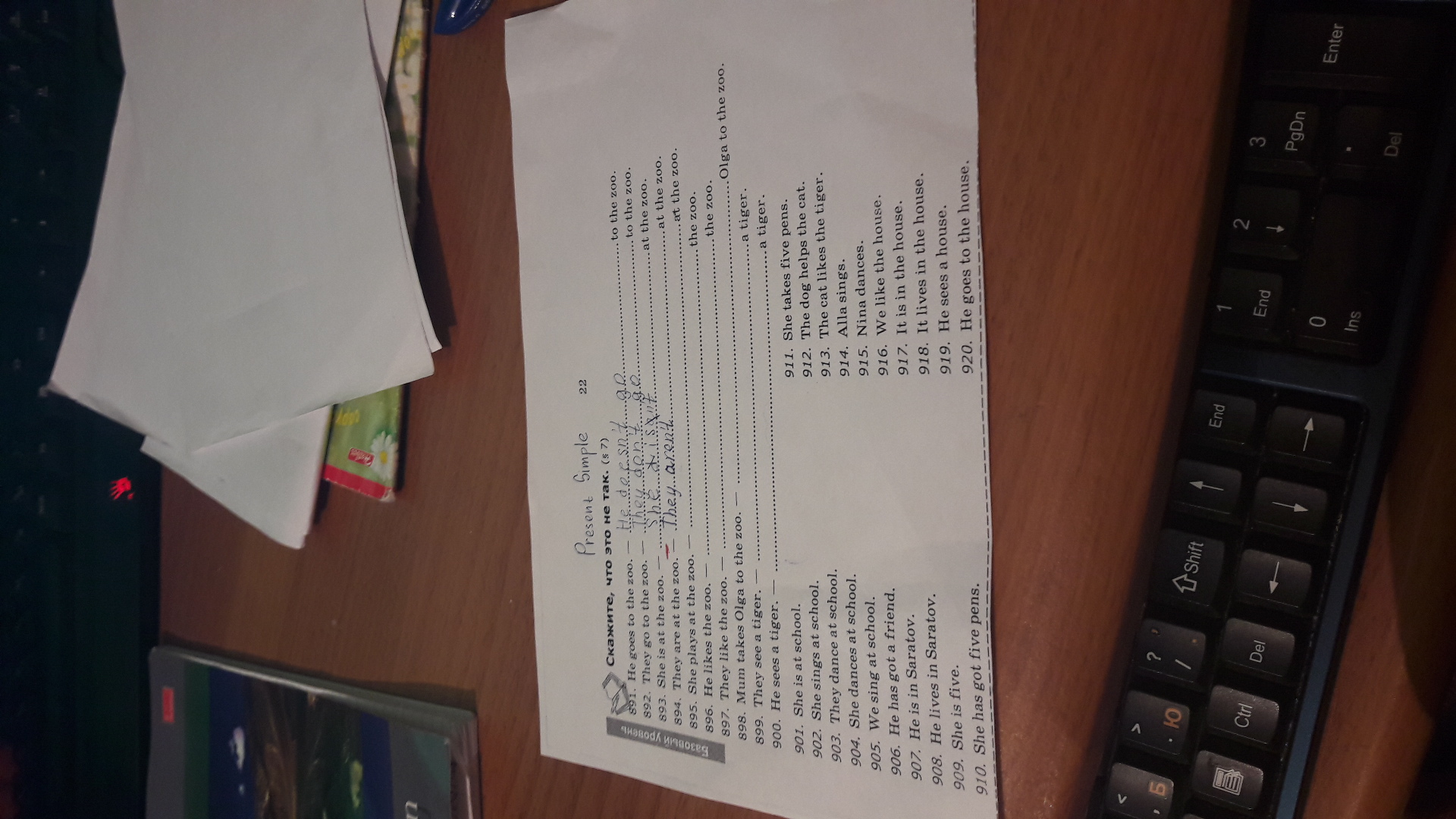 895. she doesnt play;896.he doesnt like;897.they dont like;898.mum doesnt take;899.they dont see,;900.he doesn't see;901.she isnt...;902.she doesnt sing...;903they dont dance...;904. she doesnt dance...;905. we dont sing...;906. he hasnt got...;907. he isnt...;908. he doesnt live...;909.she isnt...;910. she hasnt got...;911. she doesnt take...;912. the dog doesnt help...;913. the cat doesnt like...;914. alla doesnt sing;915.nina doesnt dance;916. we dont like...;917.it isnt; 918.it doesnt live...;919. he doesnt see...;920. he doesnt do