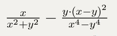 frac{1}{ x^{2} + y^{2} } - frac{y*(x-y) ^{2} }{ x^{4} - y^{4} } = frac{ x^{2} - y^{2}-y*(x-y) ^{2}  }{( x^{2} + y^{2} )*( x^{2} - y^{2} )} = frac{(x+y)*(x-y)-y*(x-y) ^{2} }{( x^{2} + y^{2} )*( x^{2} - y^{2} )} =