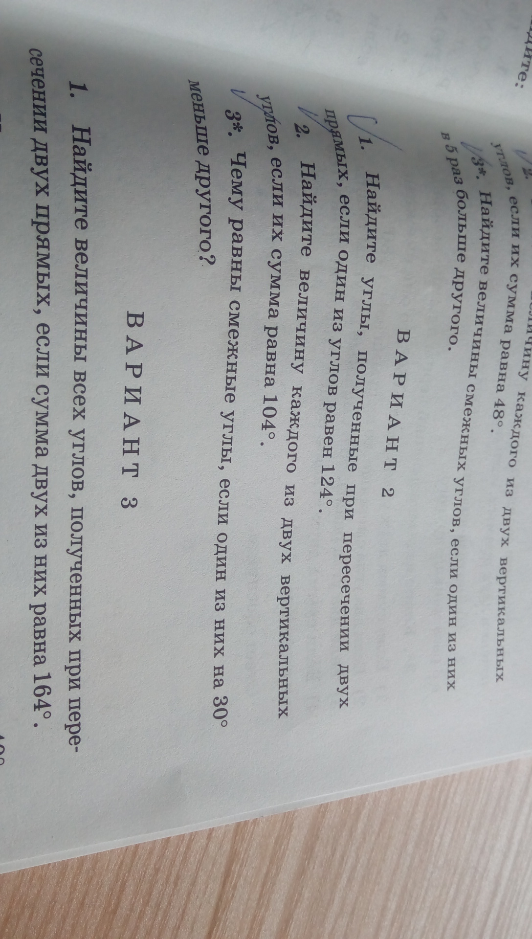 1) при пересечении двух прямых образуются 4 угла: два угла по 124°Смежные им углы будут равны по 180°-124°=56°.