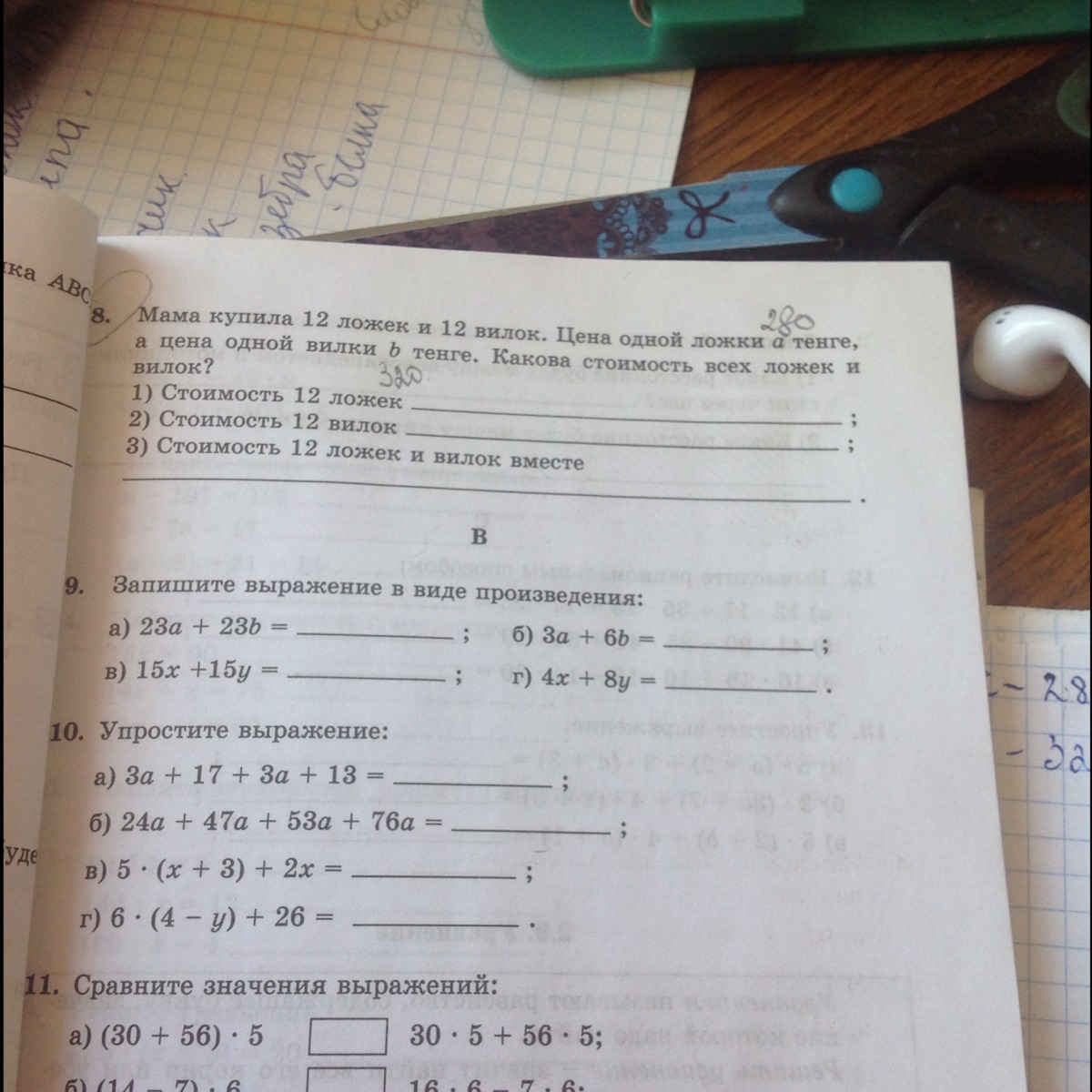 12 × 320 = 3 840 тенге.- Стоимость всех вилок.