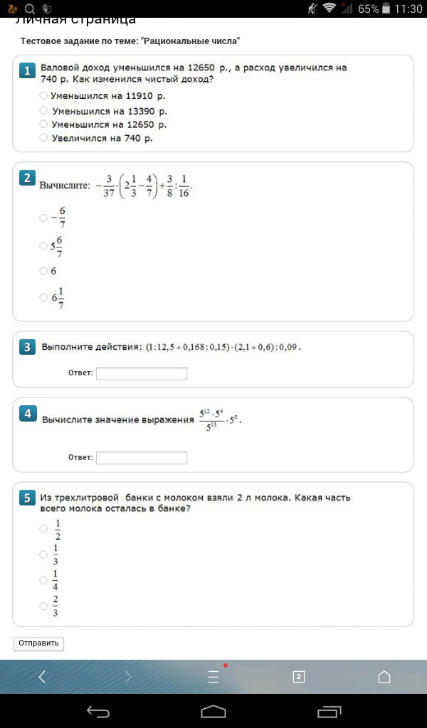 5. в 3-х литровую банку берем за единицу, из нее забрали 2/3, следовательно осталось 1/3 ответ №2