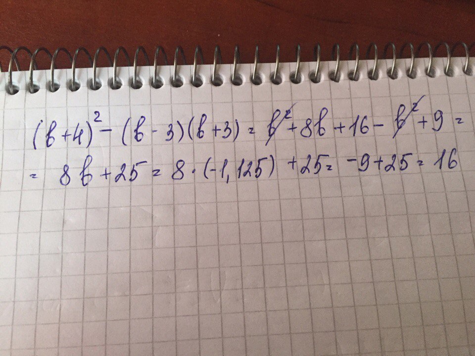 упростите выражнние (ь+4)^2 -(ь-3)(ь+3) и найдите его значение при ь=-1.125