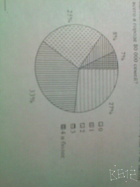 диаграмме. Сколько семей в городе N имеет ровно двоих детей, если всего в городе 80 000 семей. 7% 8% 27% 25% 0 1 2 3 4 и более 33%