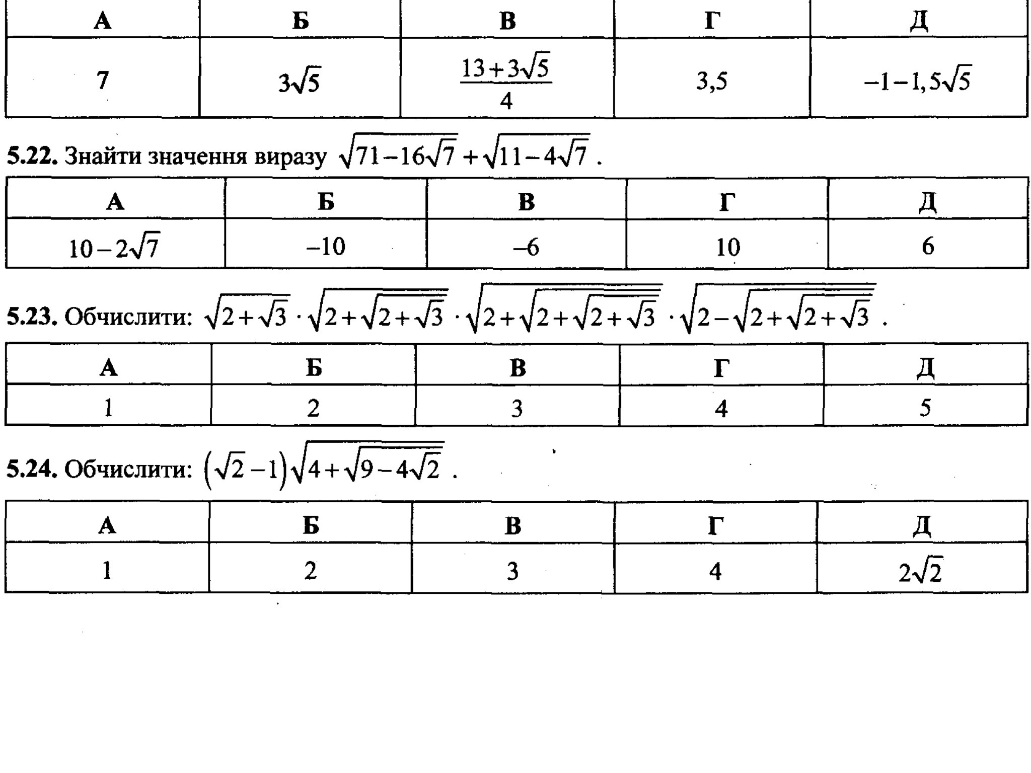5.23)\ sqrt{2+ sqrt{3} }  * sqrt{2+ sqrt{2+ sqrt{3} }} * sqrt{2+ sqrt{2+ sqrt{2+ sqrt{3} }} } * \  \  \ *  sqrt{2- sqrt{2+ sqrt{2+ sqrt{3} }} }=\ \   \ =sqrt{2- sqrt{2+ sqrt{2+ sqrt{3} }} }*sqrt{2+ sqrt{2+ sqrt{2+ sqrt{3} }} } *sqrt{2+ sqrt{2+ sqrt{3} }}* \  \ * sqrt{2+ sqrt{3} } \  \ 1) sqrt{2- sqrt{2+ sqrt{2+ sqrt{3} }} }*sqrt{2+ sqrt{2+ sqrt{2+ sqrt{3} }} } = \  \  sqrt{2^2-( sqrt{2+ sqrt{2+ sqrt{3} }})^2} = sqrt{4-2- sqrt{2+ sqrt{3} }} =
