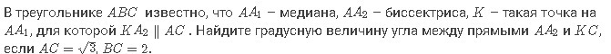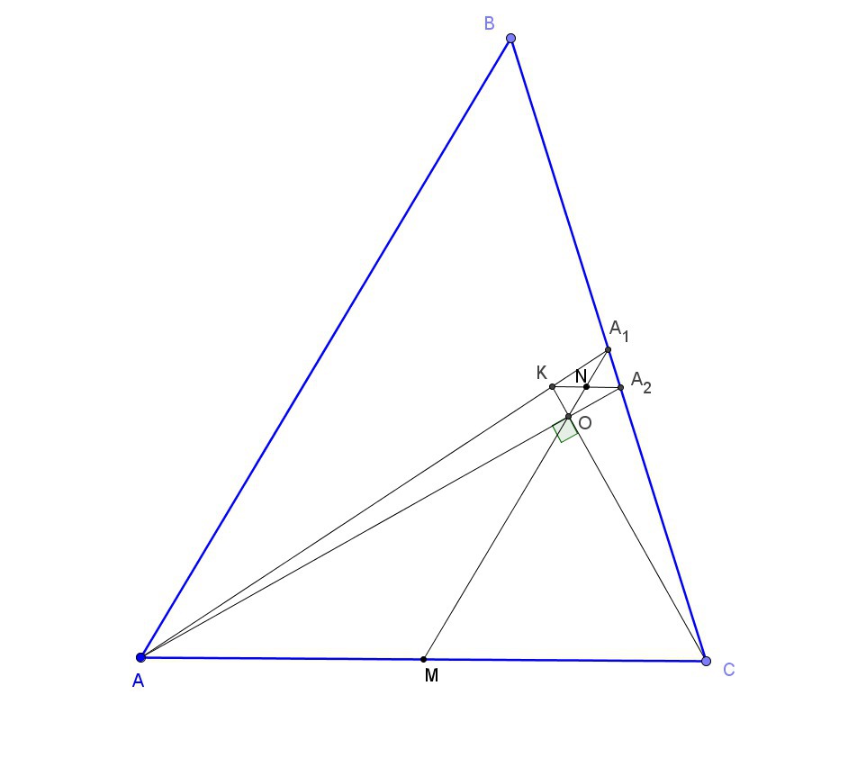 P.S. То, что M является серединой AC - известный факт, верный для любой трапеции. Доказать его можно так: Если N - точка пересечения A₁M и KA₂, то из пар подобных треугольникв получаем: