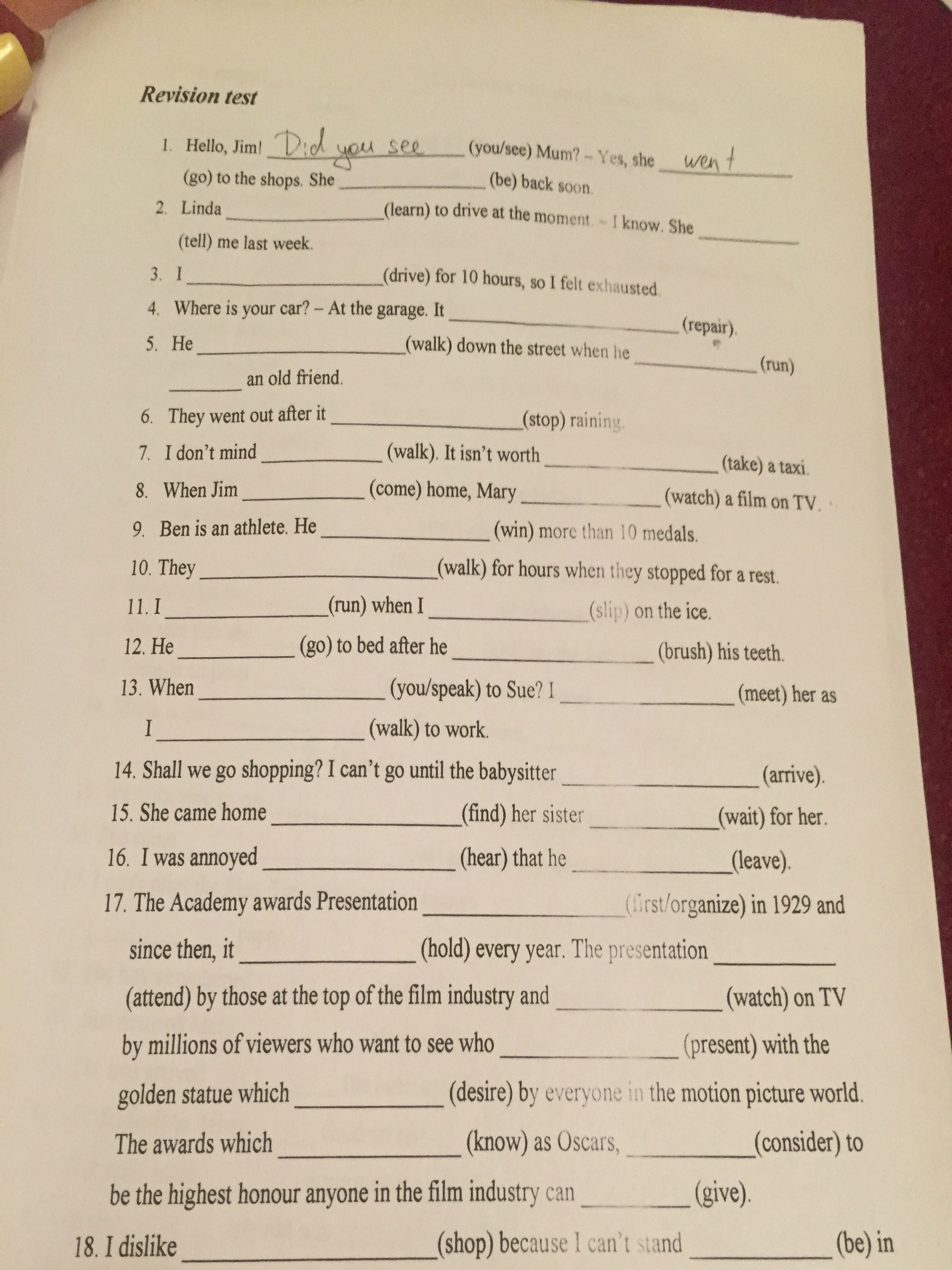 17) (там смазано), holds, attends, watches, presents, desired, known, considers, given;