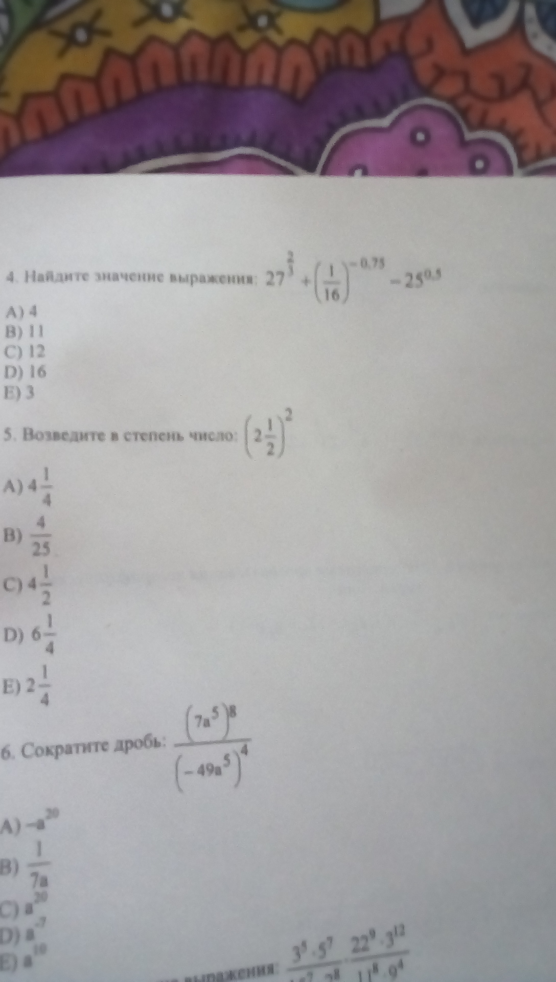 (2¹/₂)²=(5/2)²=25/4=6¹/₄ (D)