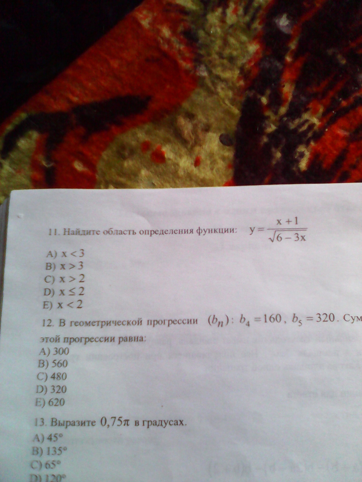 Область значений - это те значения, которые может принимать аргумент х. В числителе х может принимать любые значения, а знаменатель не может быть равен 0, т.к на 0 делить нельзя, и выражение под корнем не может быть отрицательным, т.к. нельзя извлечь корень четной степени из отрицательного числа, значит: