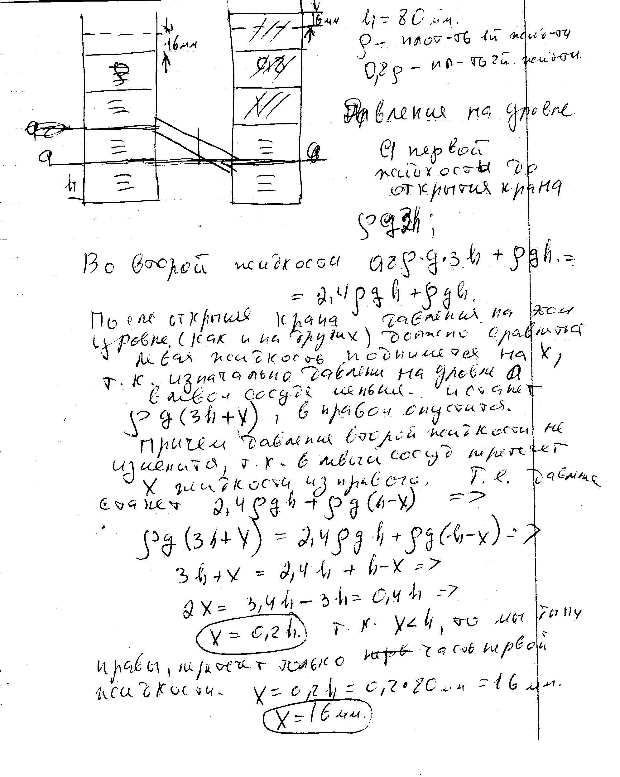 в левом сосуде после того как кран откроют? Жидкости не смешиваются, объёмом соединительной трубки можно пренебречь. h=8 см