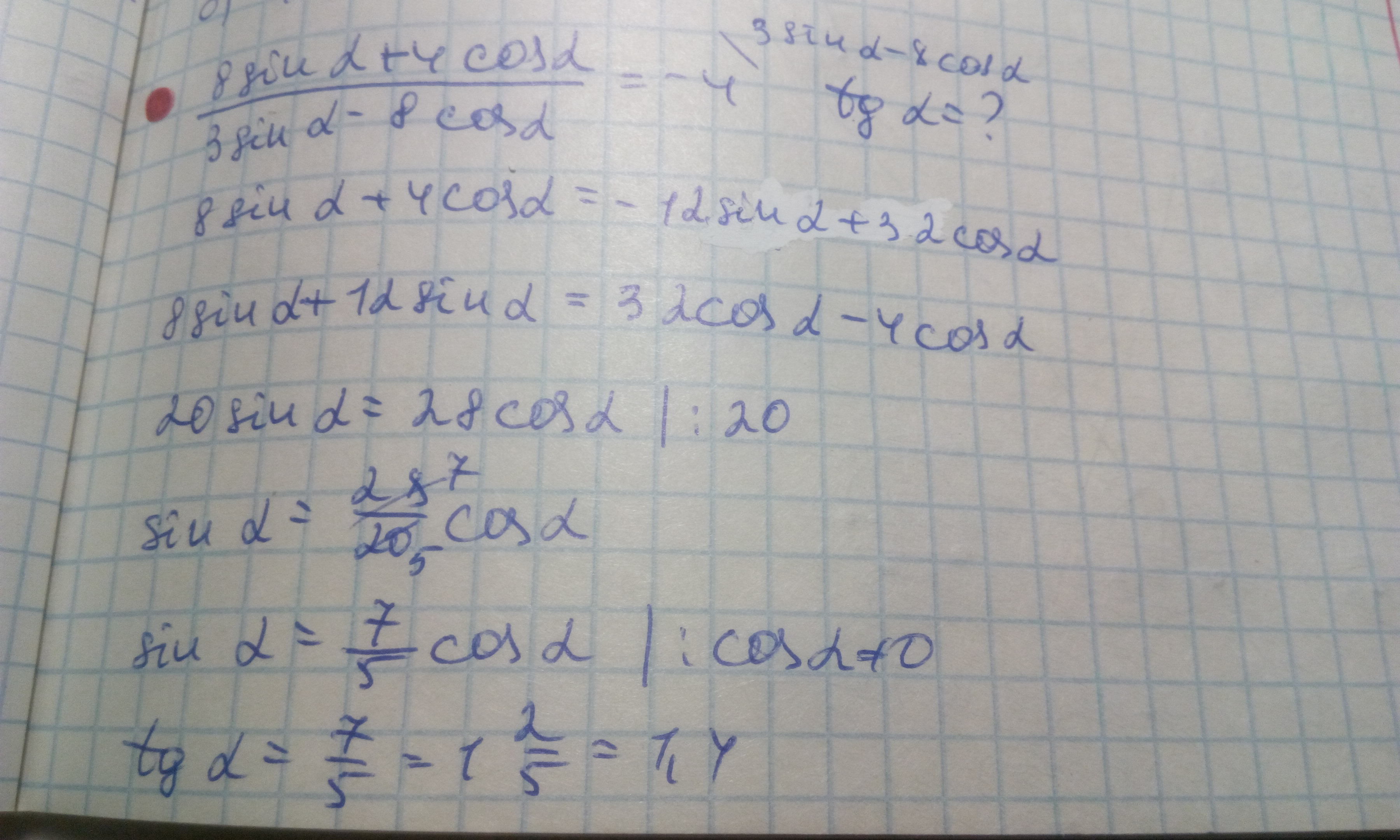 Начинаем решать,как уравнение.Затем используем формулу:tgα=sinα/cosα/