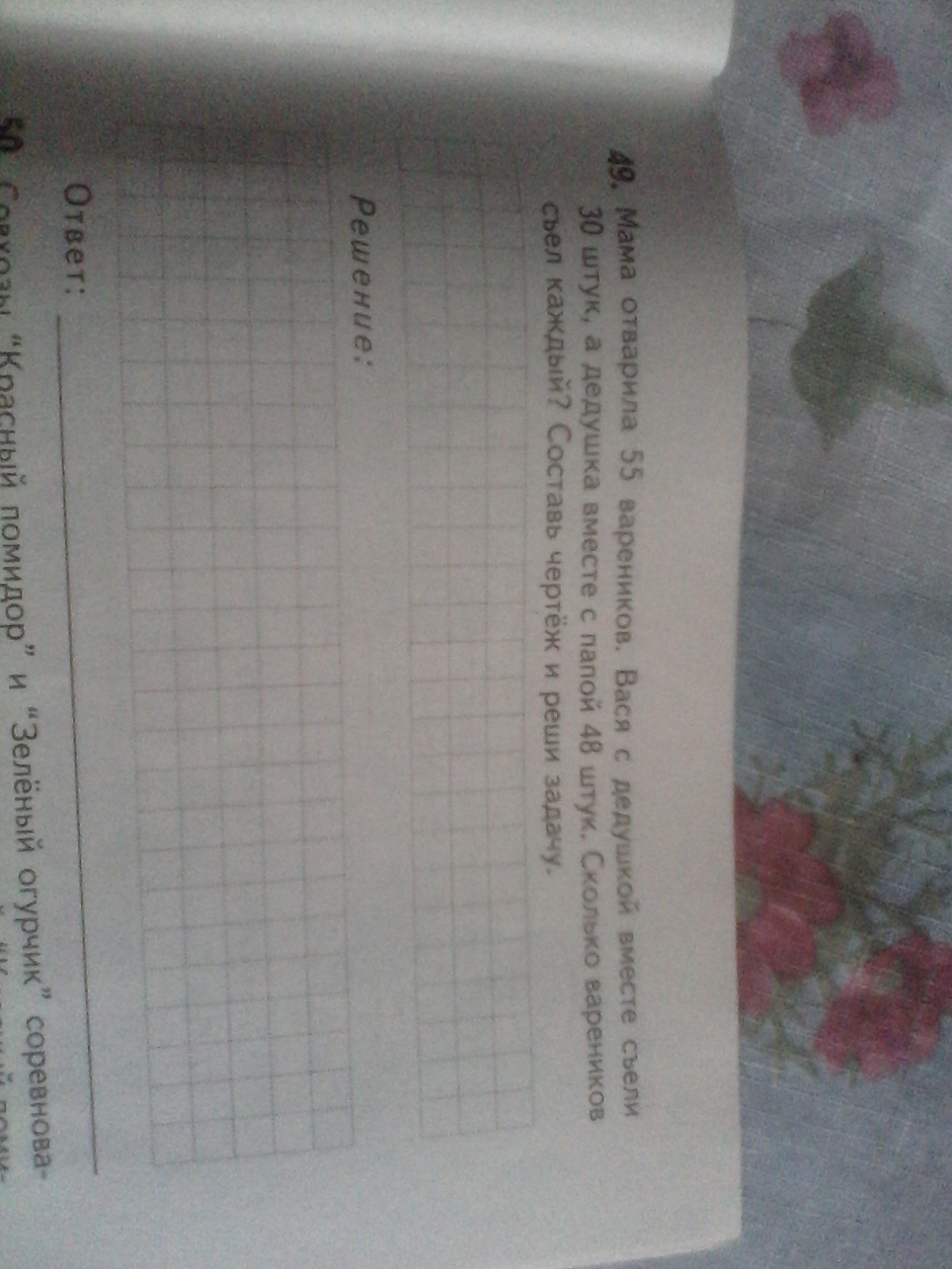 3)55-(25+7)= 23(вареников)-съел дедушка.