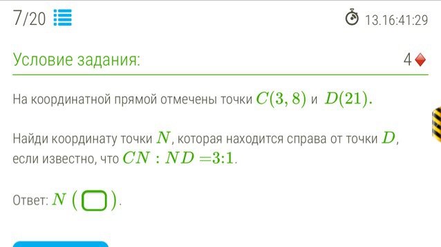 Теперь если D(21), а длина DN равна 8.6, то N(21+8.6=29.6)