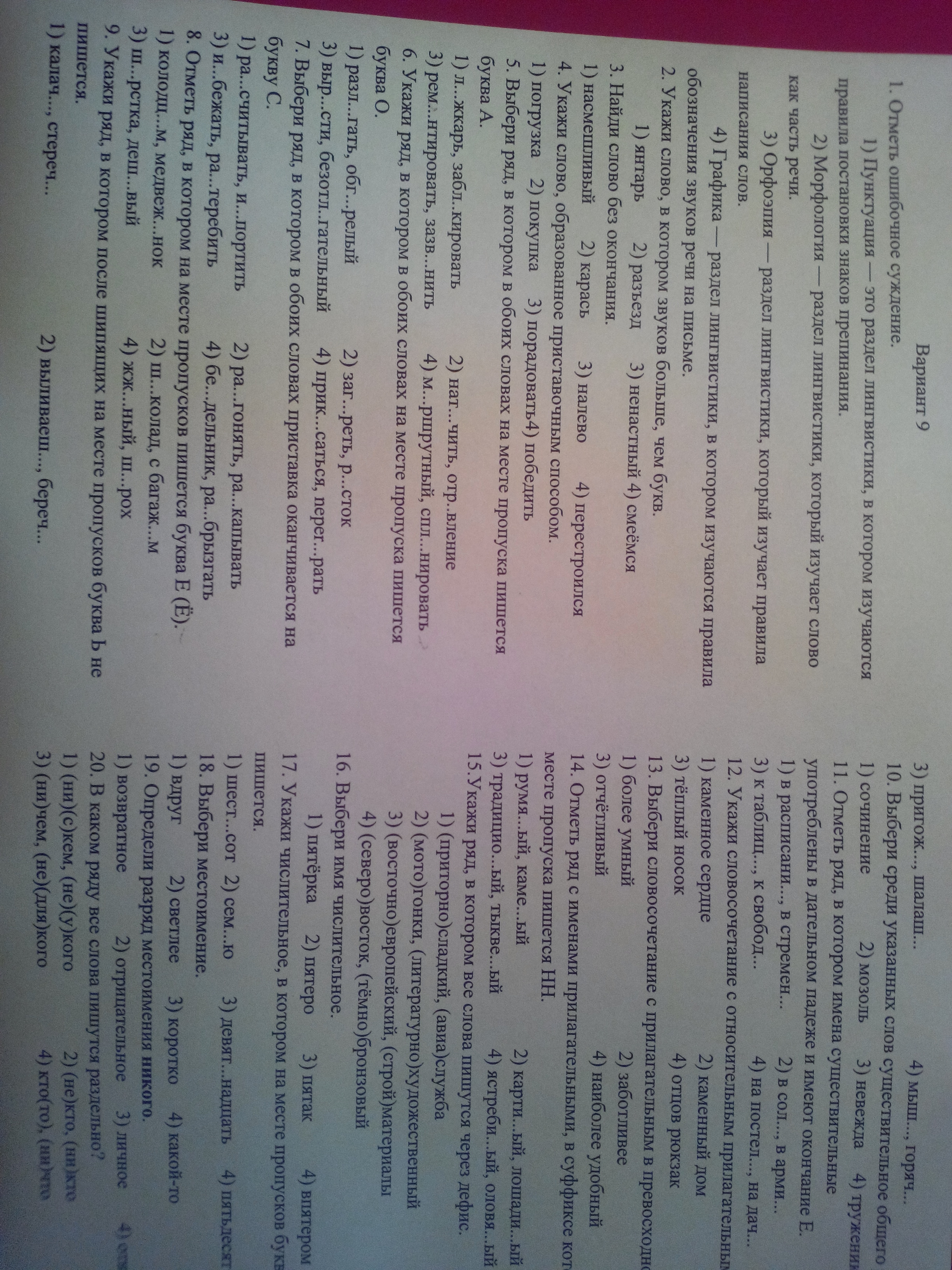 9. пригож, шалаш 10. невежда