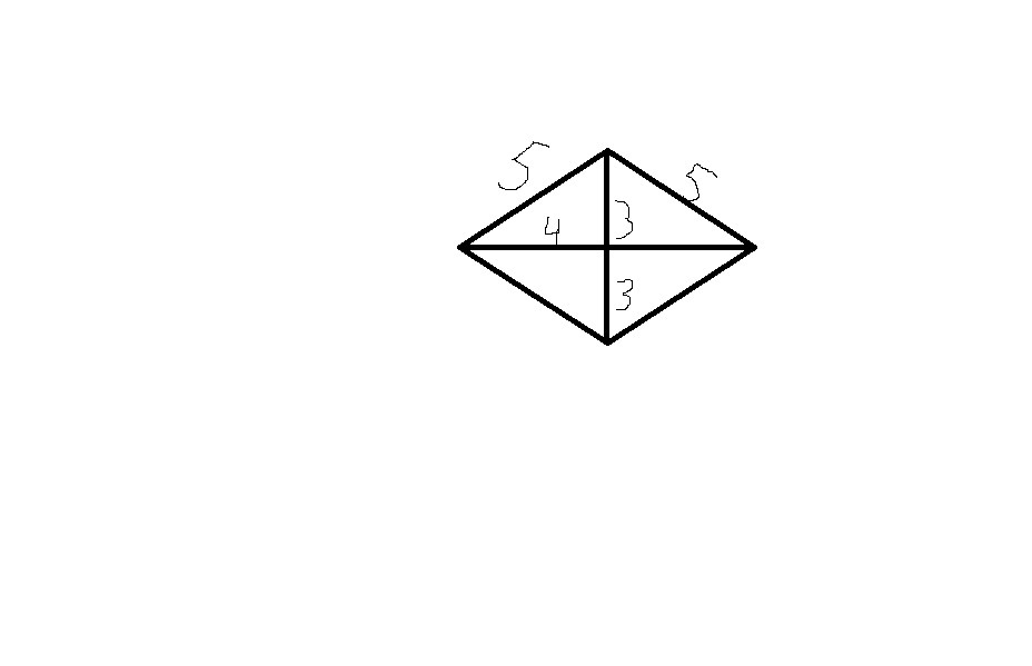 Так как ромб - параллелограмм, то диагонали делятся точкой пересечения пополам, следовательно, одна диагональ равна 6, а другая 8. Площадь равна половине произведения диагоналей. 6*8/2=24.