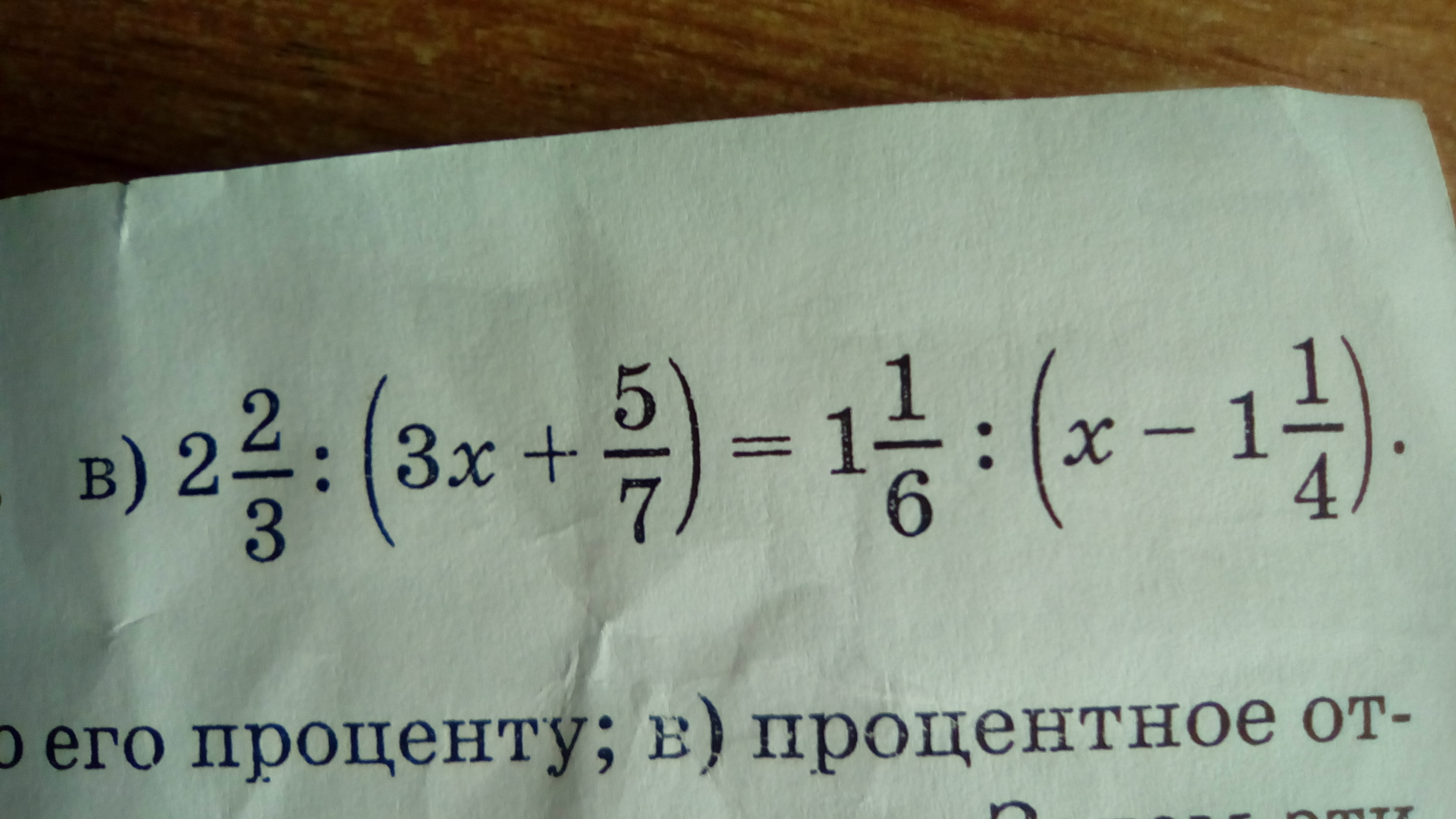 2 2/3 : (3х+5/7)=1 1/6 : (х-1 1/4) это записана пропорция,