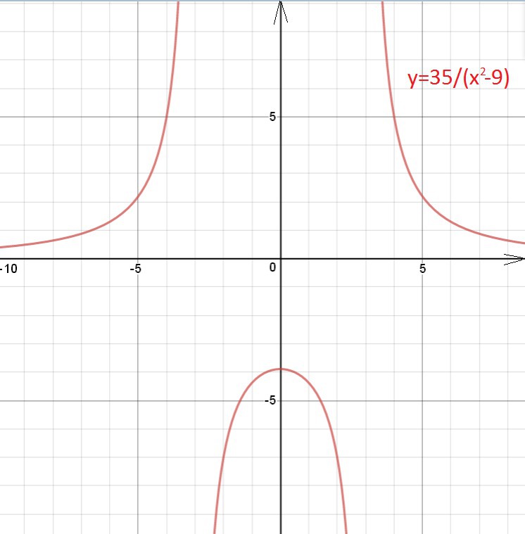 Этот график не может быть получен из графика у=35/х² так как имеет совершенно другой вид у=35/(х-3)(х+3)