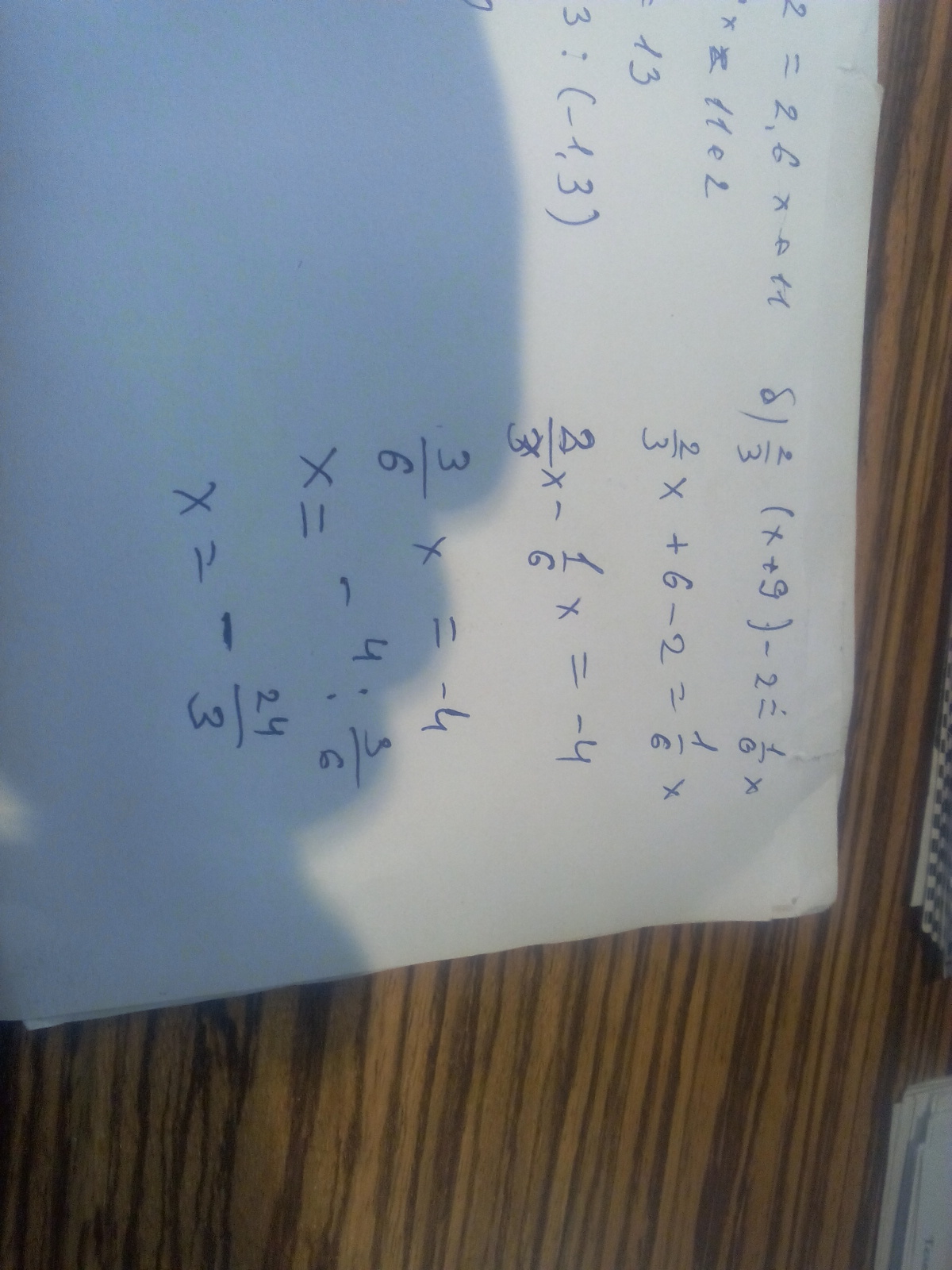 б) 2/3(х + 9) - 2 = 1/6 х.