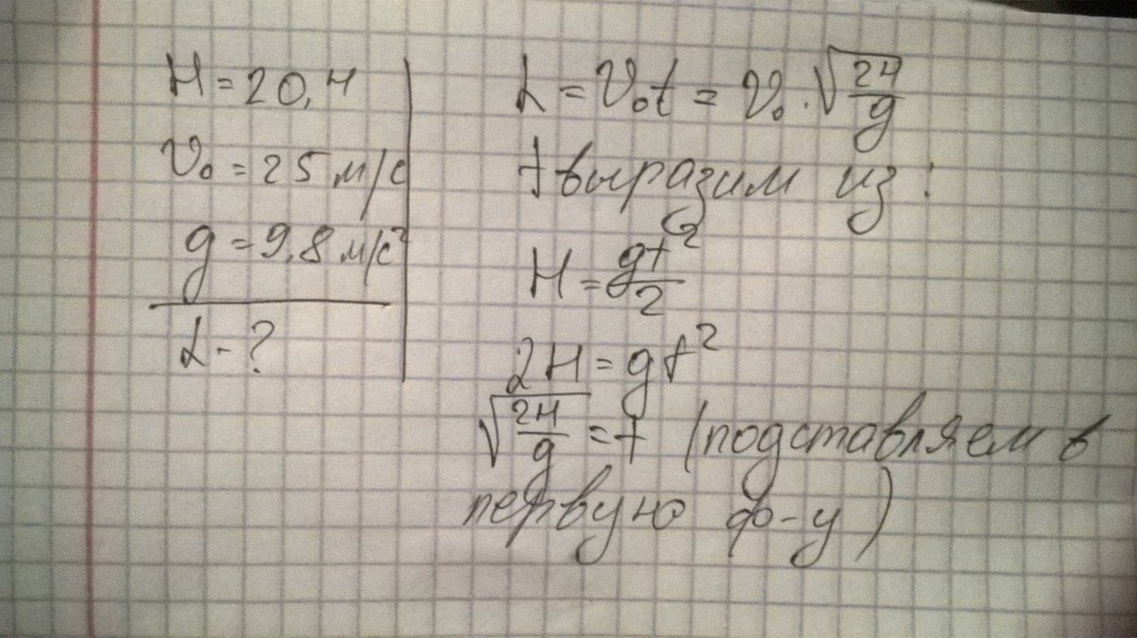 Я вывела формулу нахождения, там уже сами подставите. ( корень я поставила, так как время в квадрате)