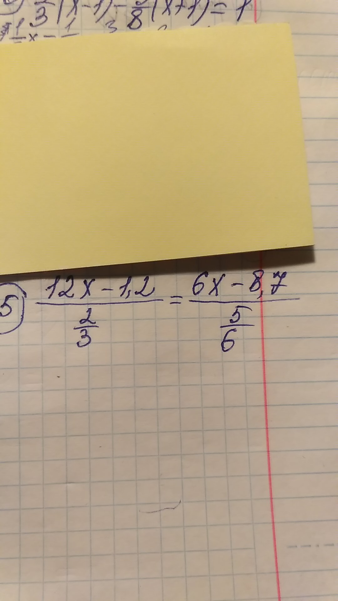 ( 12x - 1,2) / (2/3 ) = ( 6x - 8,7 ) / ( 5/6 )