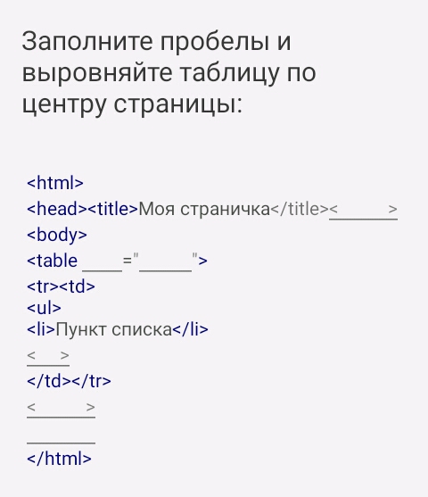 Помогите с HTML. Какие теги нужно вставить в пропуски. ПОЖАЛУЙСТА, ПОСМОТРИТЕ ВОПРОС НА КАРТИНКЕ!!!