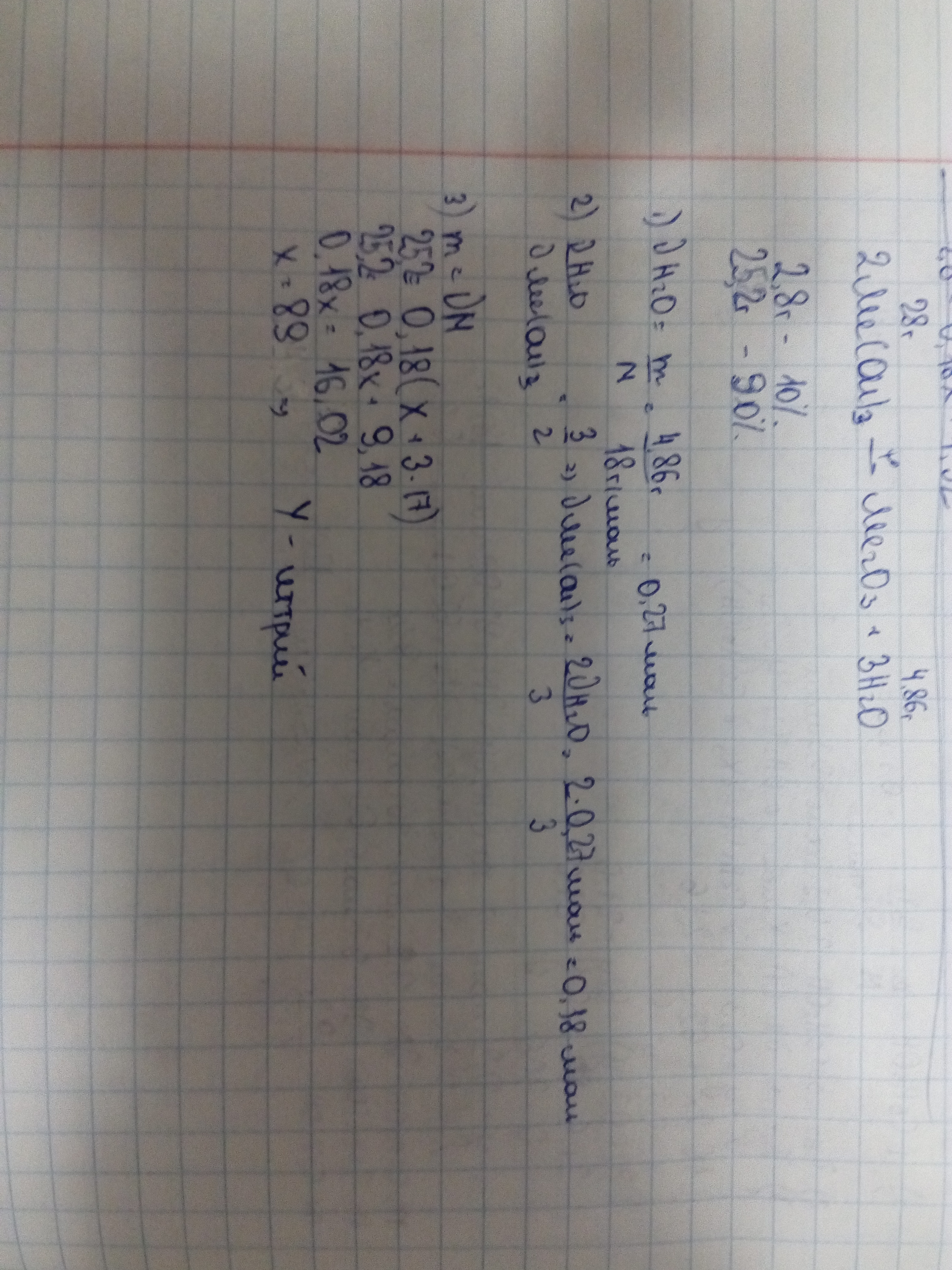 массы Ме(ОН)3 получена вода массой4,86г и остался гидрооксид массой 2,8г. установите металл.