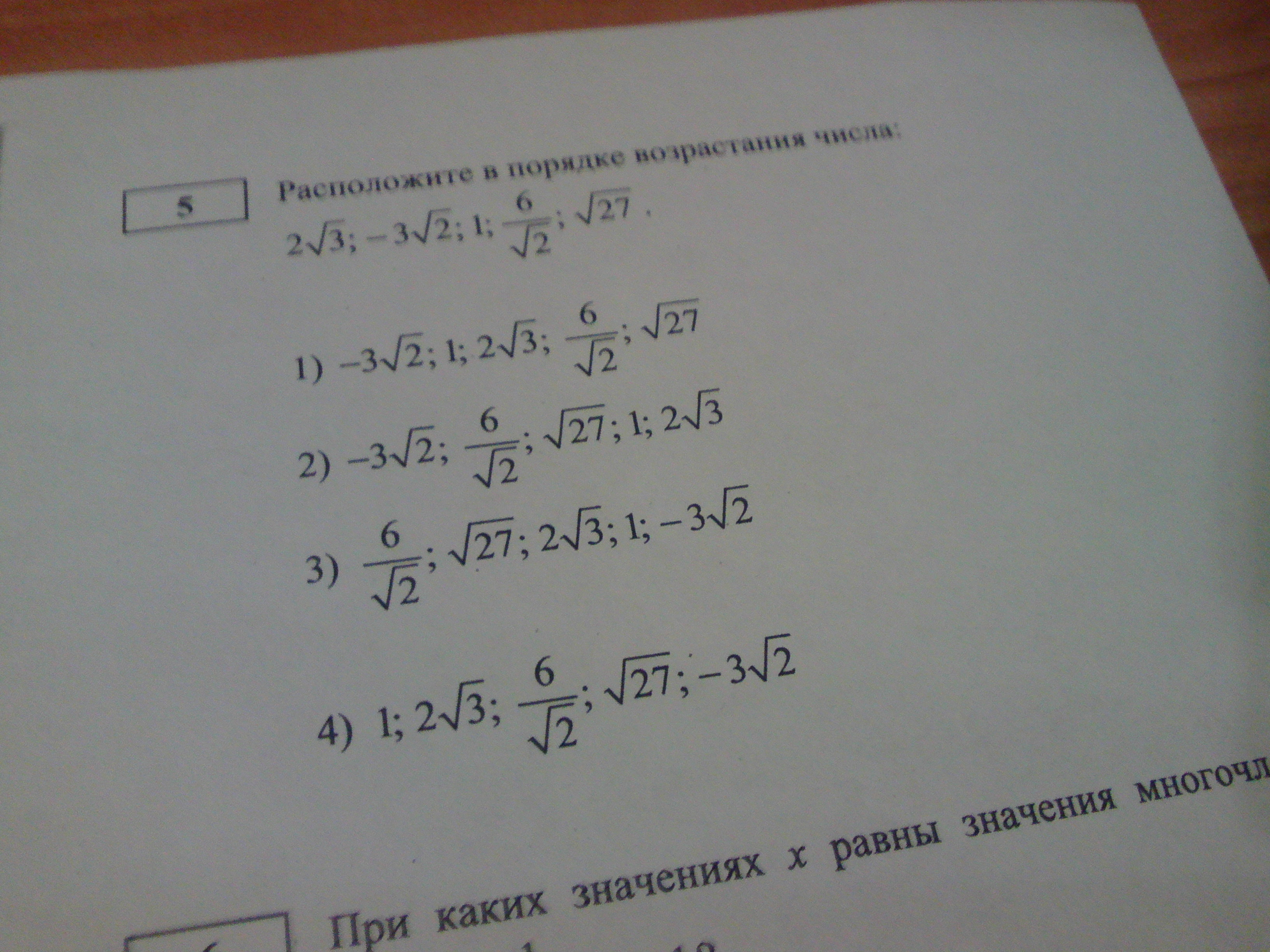 Ответ 1)-3√2;1;2√3;6/√2;√27