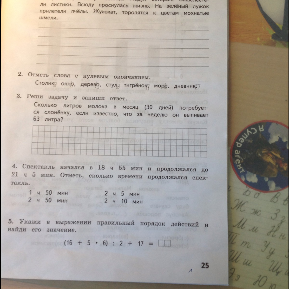 1) 63:7=9 (л) - слонёнок выпивает в день.