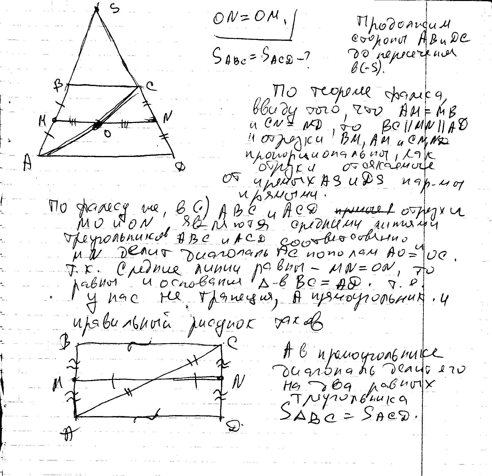 Полный бред, и я не о почерке. BD и AC не параллельны, теорема Фалеса говорит абсолютно о другом, и нет обратной ей теоремы. В итоге доказывается непонятно что. Как вообще это решение получило птичку?