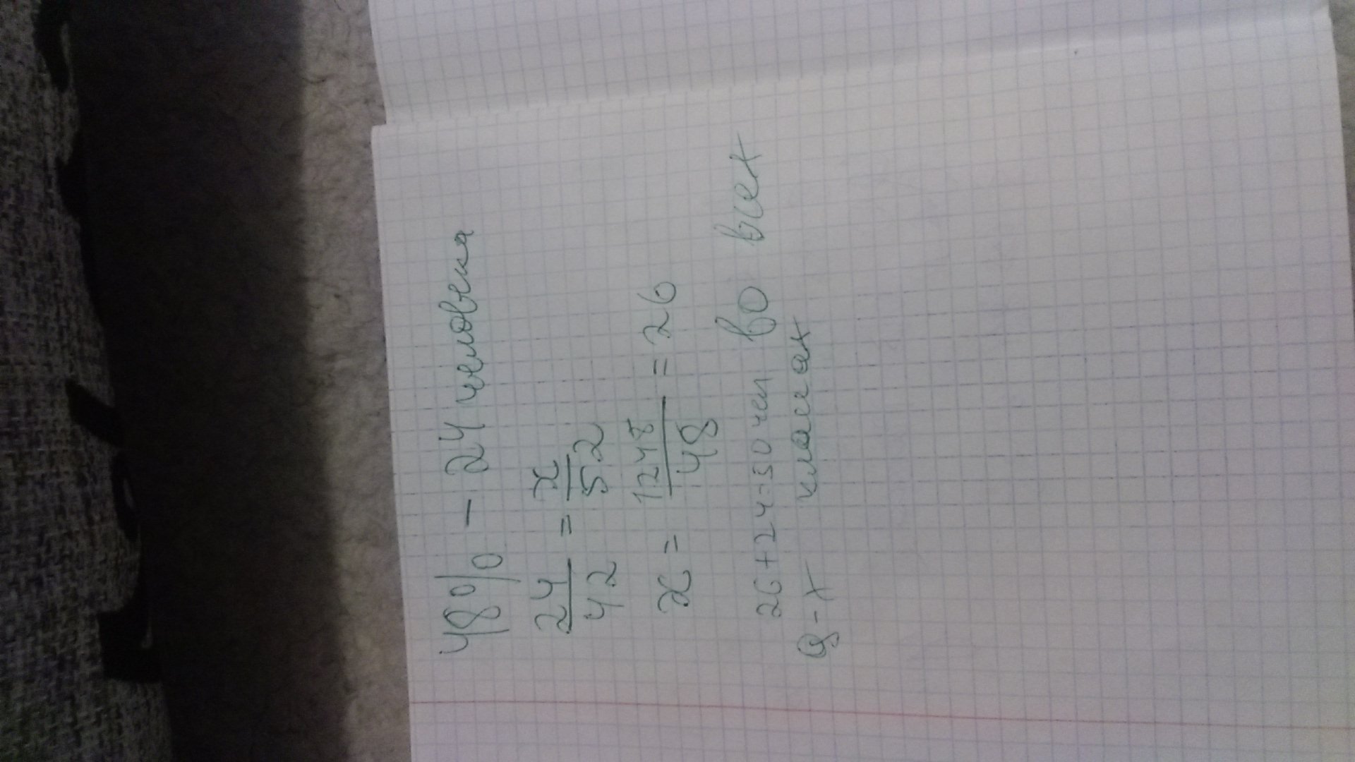 Решите задачу: В школе два девятых класса В девятом А учиться 52 % всех девятиклассников а в девятом Б 24 человека сколько всего учеников в Девятых классах? Заранее большое спасибо!))