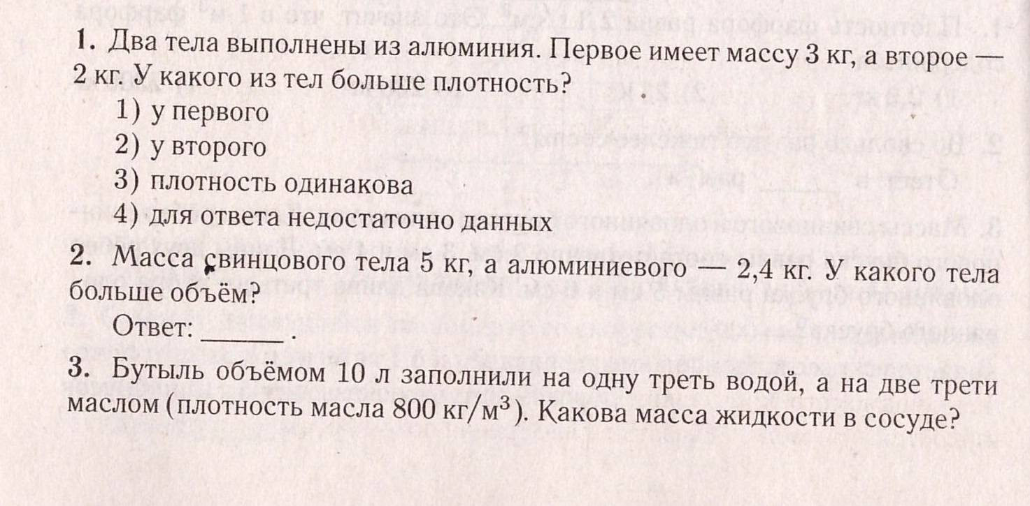 1)Средняя плотность тела — отношение массы тела к его объёму. Для однородного тела она также называется просто плотностью тела. Формула плотности p=m/V Из чего p1=3/V p2=2/V p1>p2