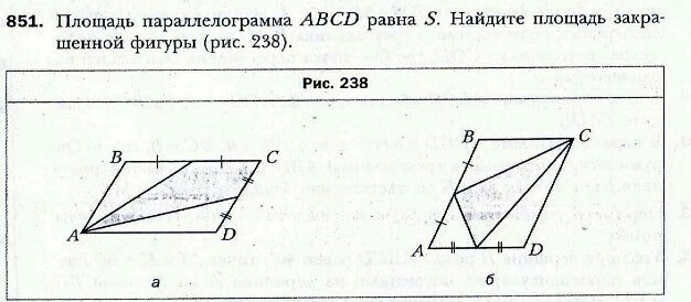 1) Проведем диагональ АС Получим четыре треугольника. , площади которых равны между собой , площадь каждой S/4. Искомая фигура состоит из двух таких треугольников: S1=2·S/4=S/2.