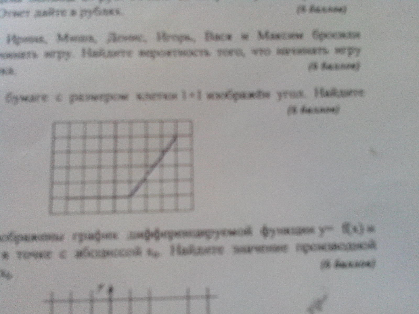 текст задачи: на клетчатой бумаге с размером клетки 1х1 изображен угол . найти синус угла!