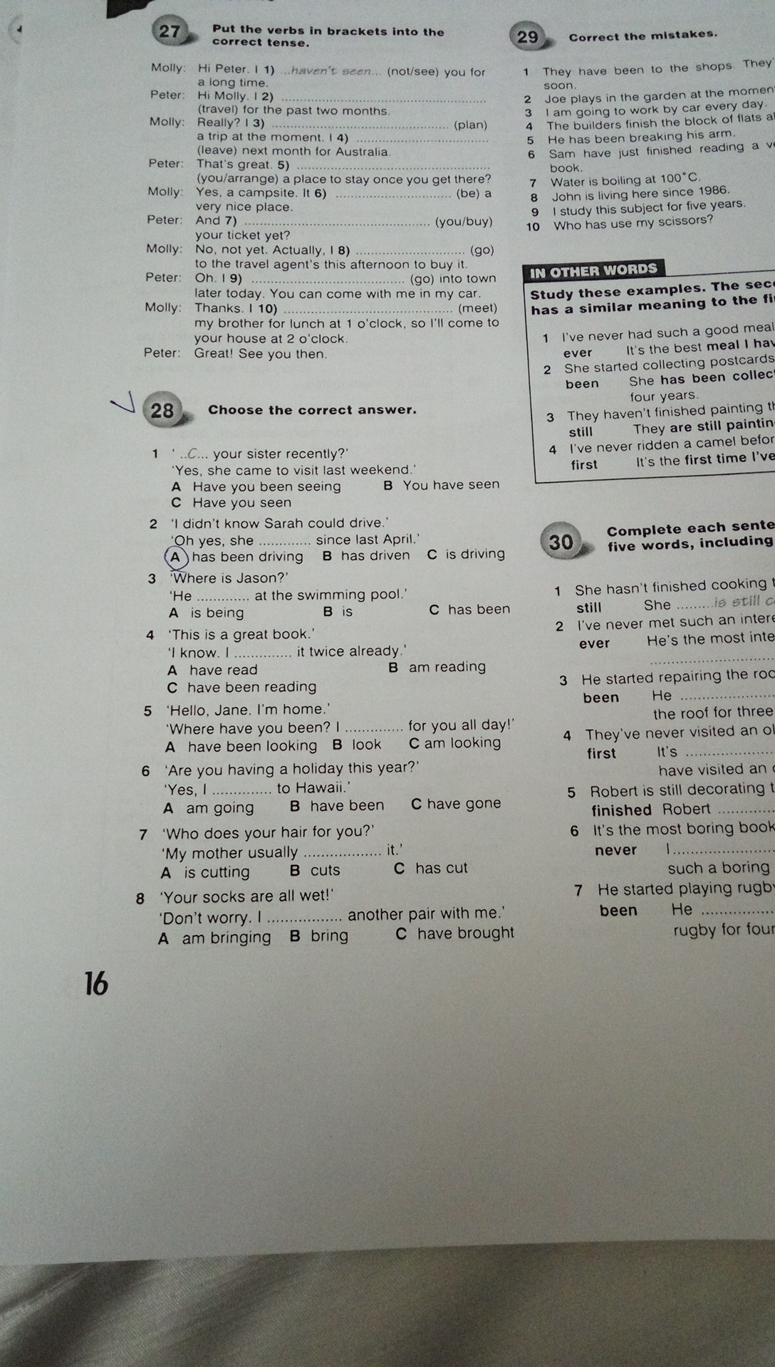I have been traveling, am planning, am going to leave, did you arrange, will be, have you bought, am going, am going, am meeting