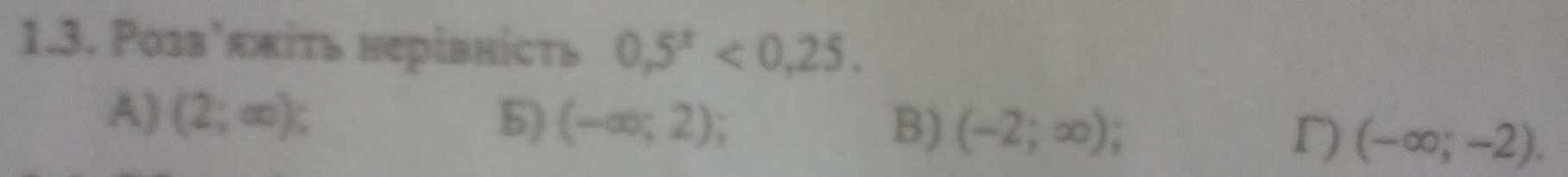 0,5ˣ < 0,5² показательная функция с основанием 0,5 - убывающая, большему значению функции соответствует меньшее значение аргумента.