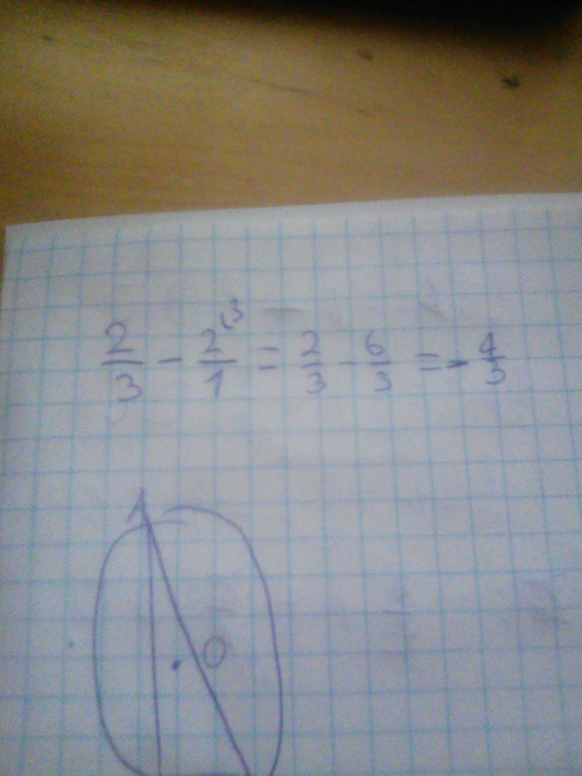 *Вычислите дробь из числа плиз. 2/3 - 2 Моё решение такое : 2/3-2= 2/3-2/1= 2/3-6/3=1целая 2/3-5/3=5/3-5/3=0. Правильно ли?