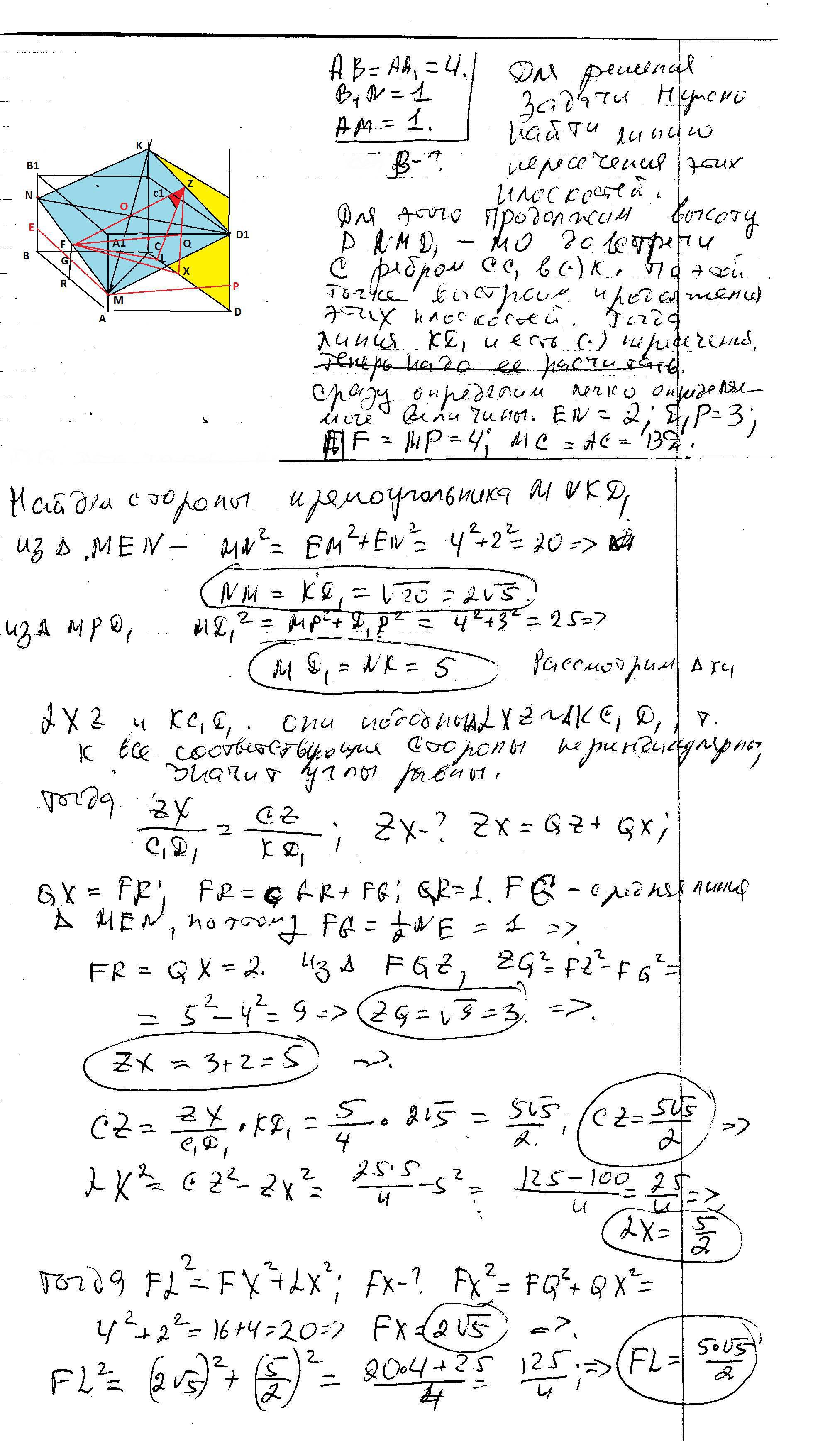 n=MD₁×MK=(-12,-8,16) перпендикулярно плоскости D₁MK.
