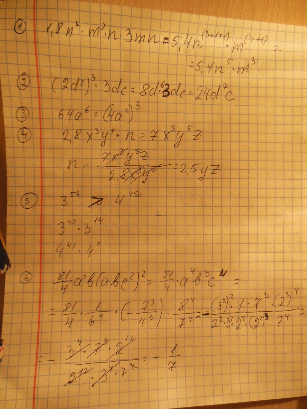1)1,8n³m²n*3mn=1,8*3*m³n⁵=5,4m³n⁵