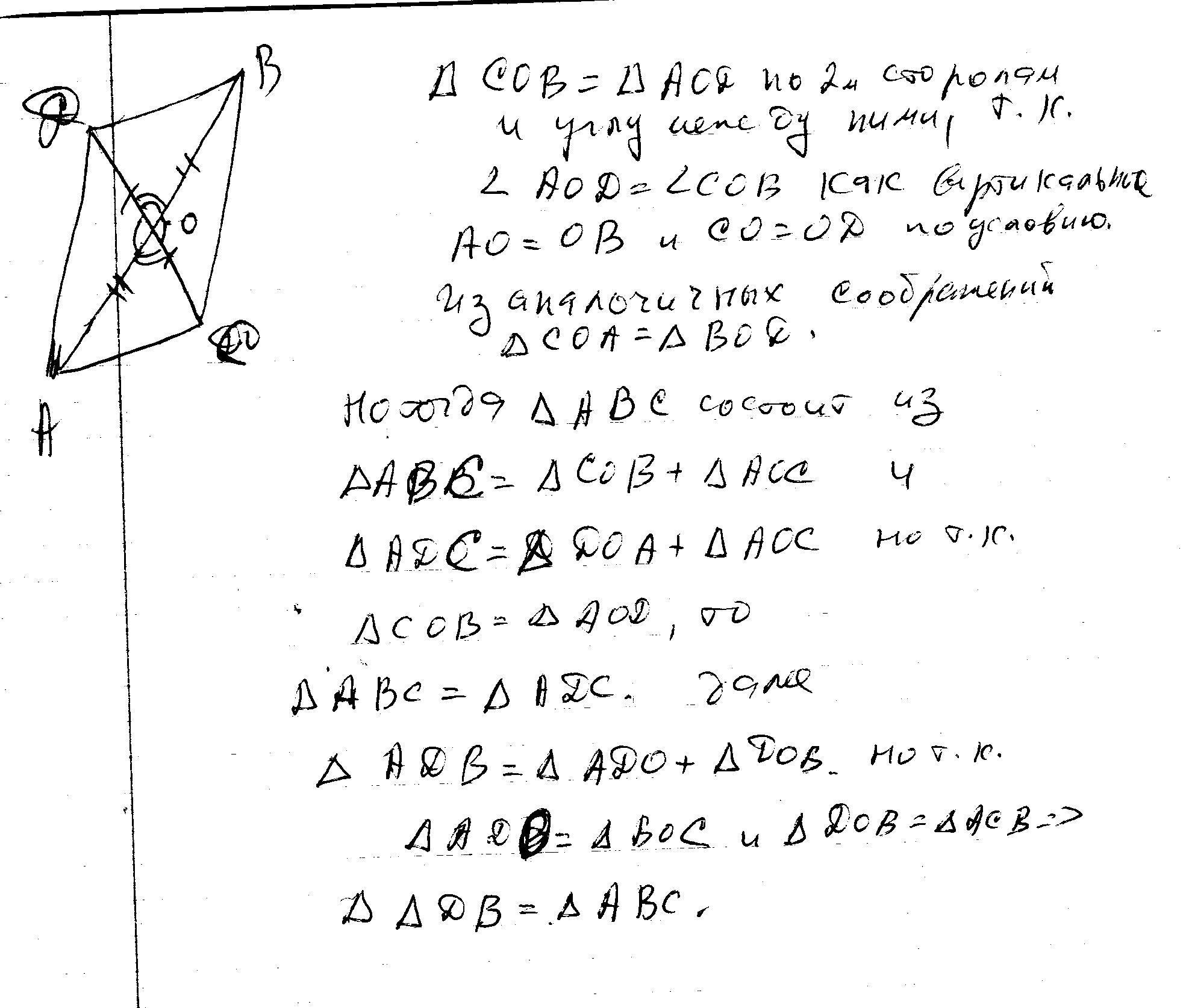 Отрезки AB и CD пересекаются в точке O, которая является серединой каждого из них.