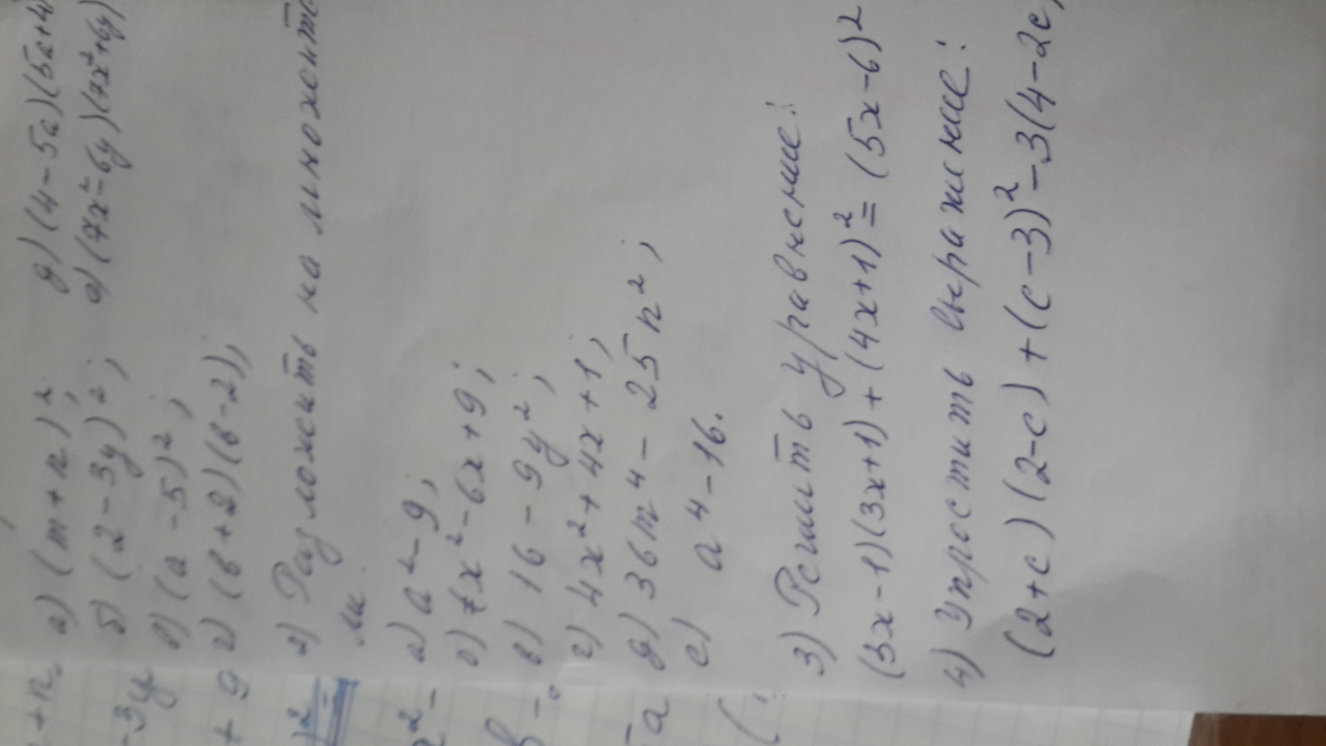 в)16-9у²=(4-3у)(4+3у)