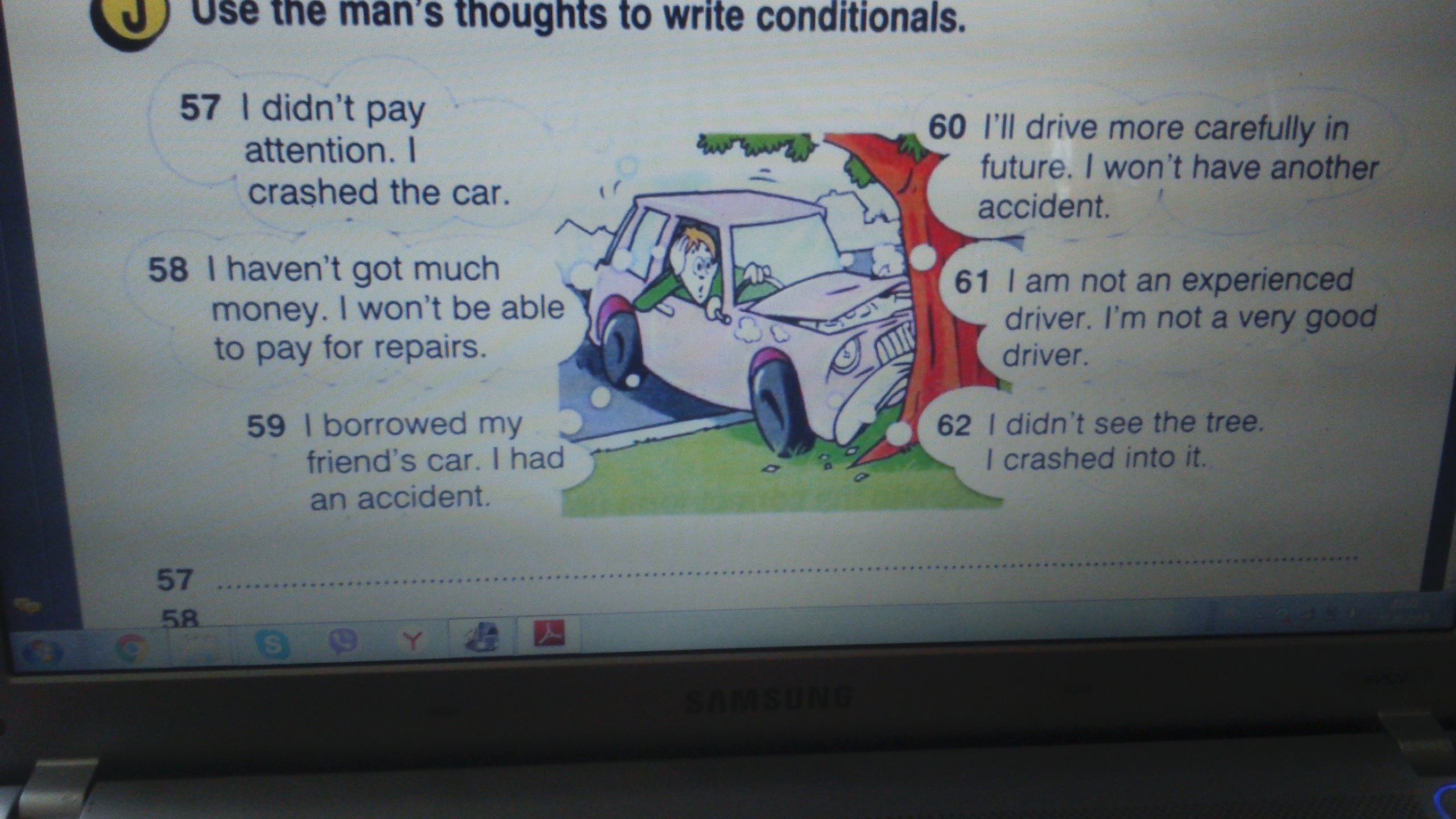 59. If I hadn't borrowed my friend's car, I wouldn't have had an accident.