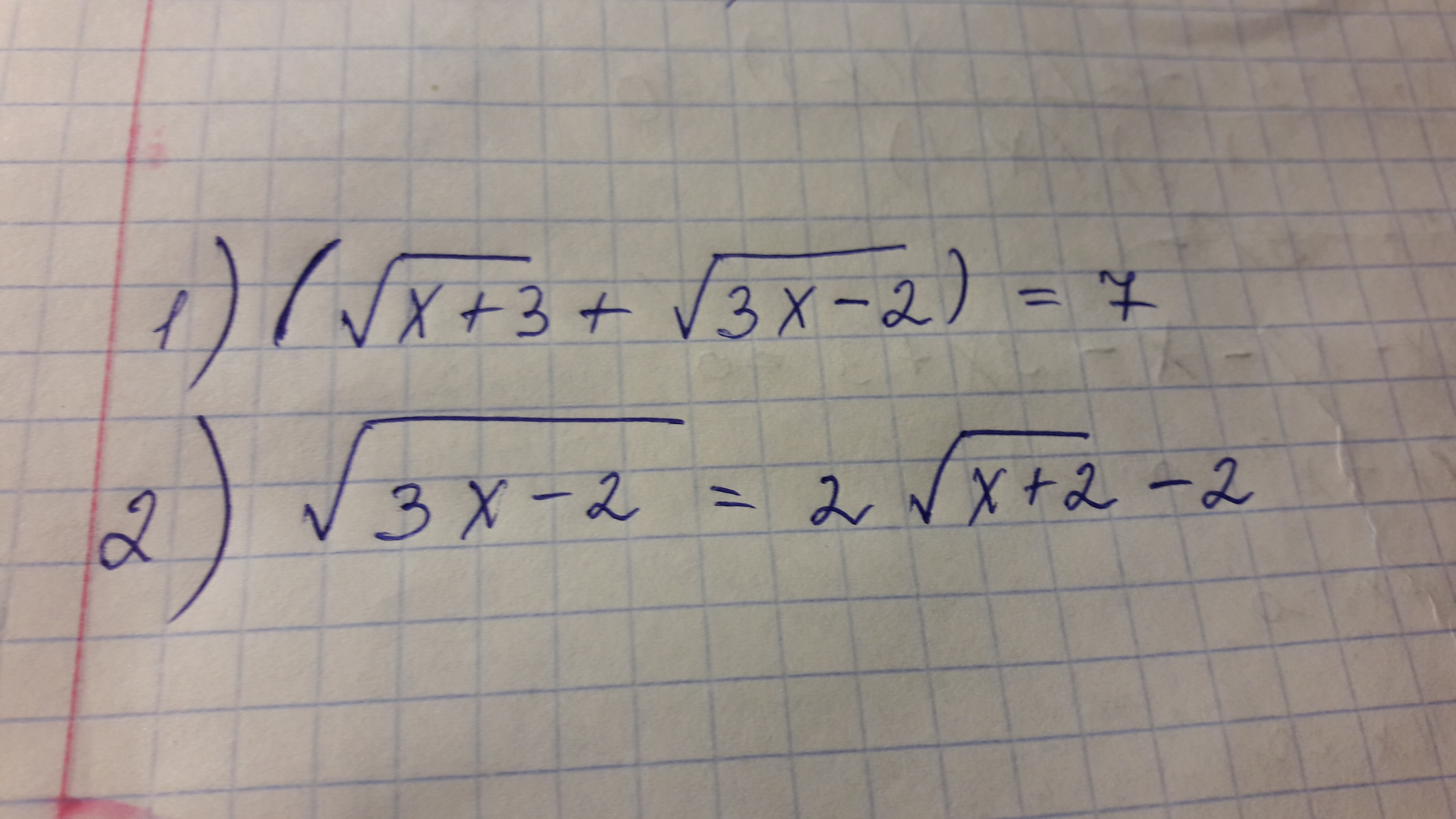 √(x+3)+√(3x-2)=7 ОДЗ: x≥-3 x≥2/3 x∈[2/3;+∞)