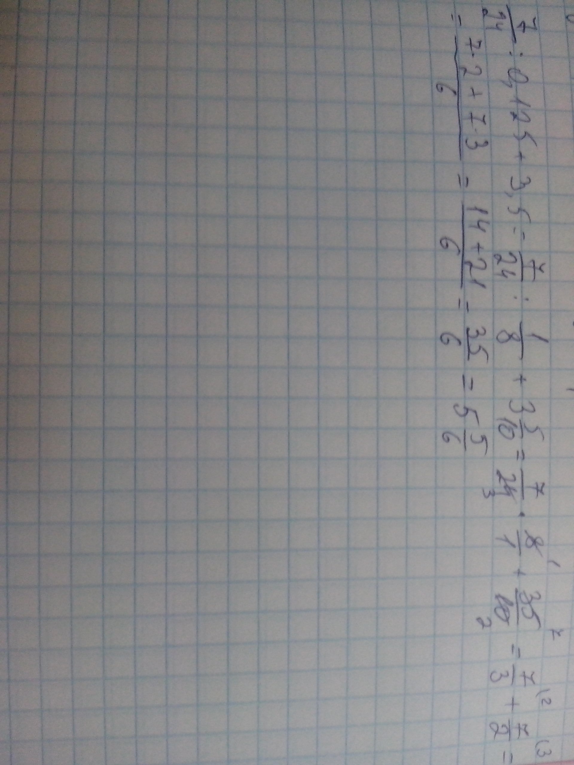 7 24/0,125+3,5= 7 24/3,625= 49,375/3,625= 13 2,25/3,625