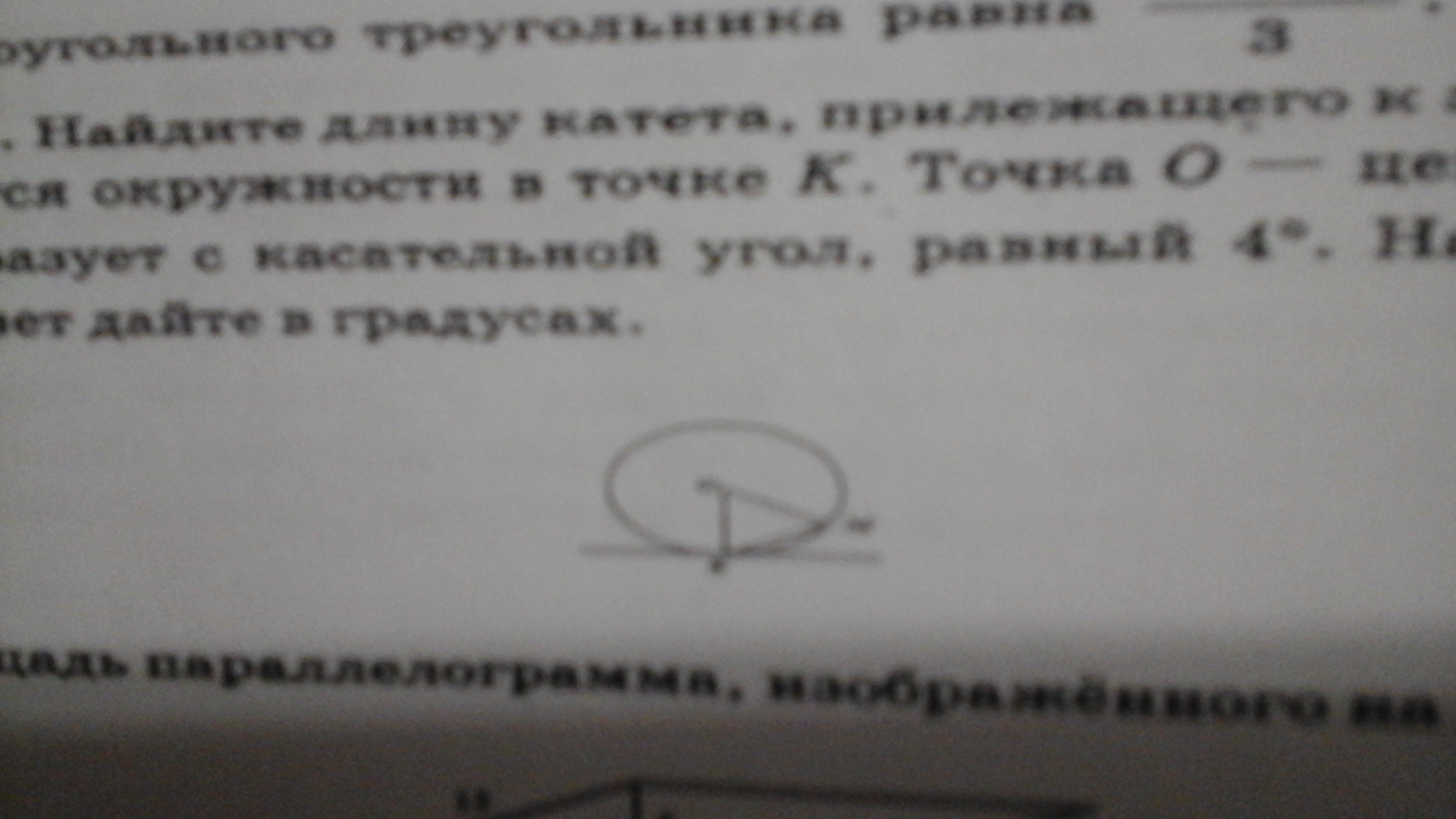 Прямая касается окружности в точке К. Точка О центр окружности. Хорда КМ образует с касательной угол, равный 4 градуса. Найдите величину угла ОМК. Ответ дайте в градусах