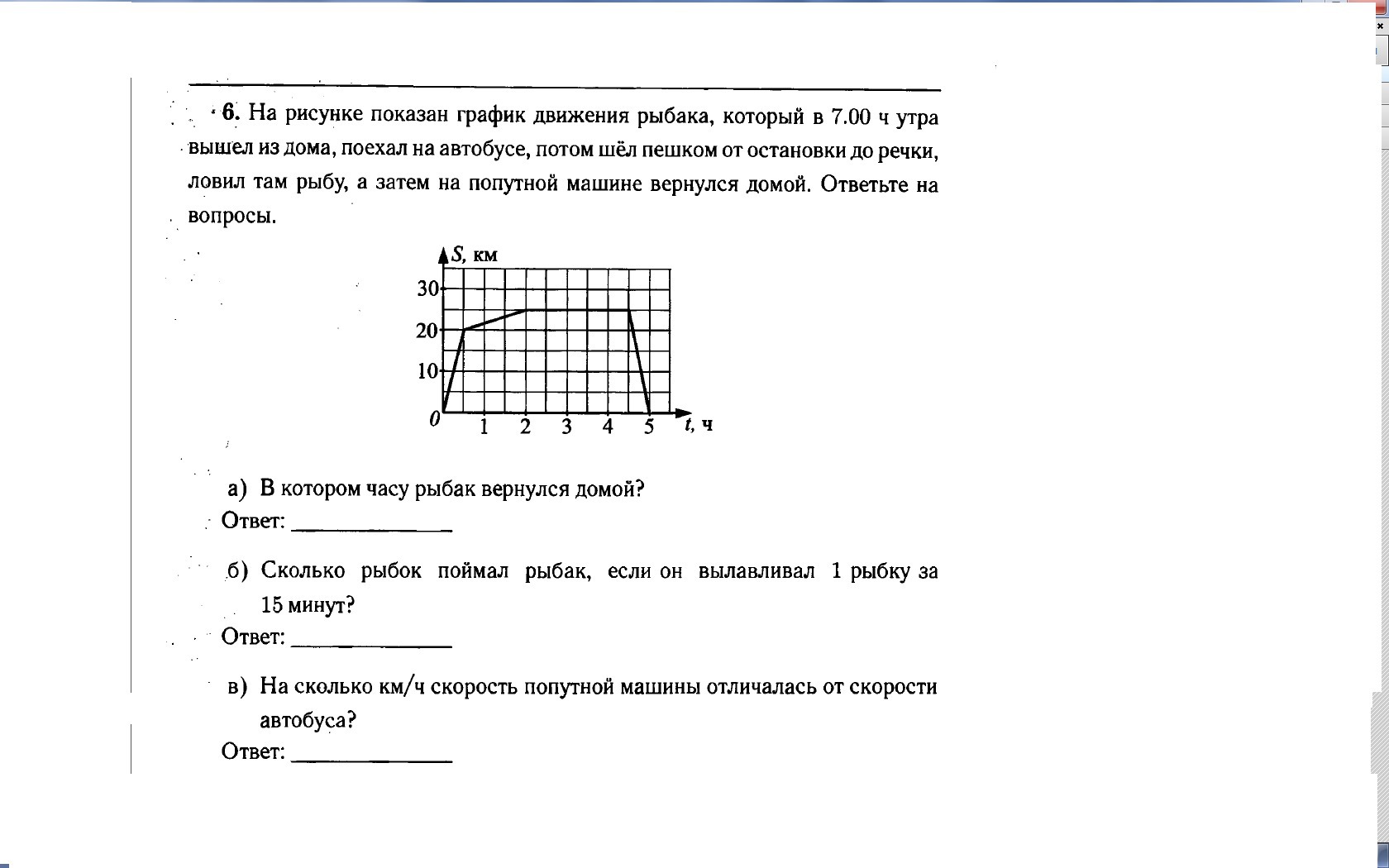 1. Рыбак вернулся домой в (7 + 5) = 12 часов дня.