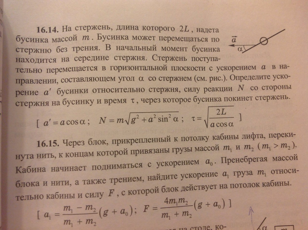 Так как ускорение а' = a cosα, то чисто кинематически при начале движения с 0 скоростью перемещение бусинки L = = a't^2/2 = (at^2•cos α)/2