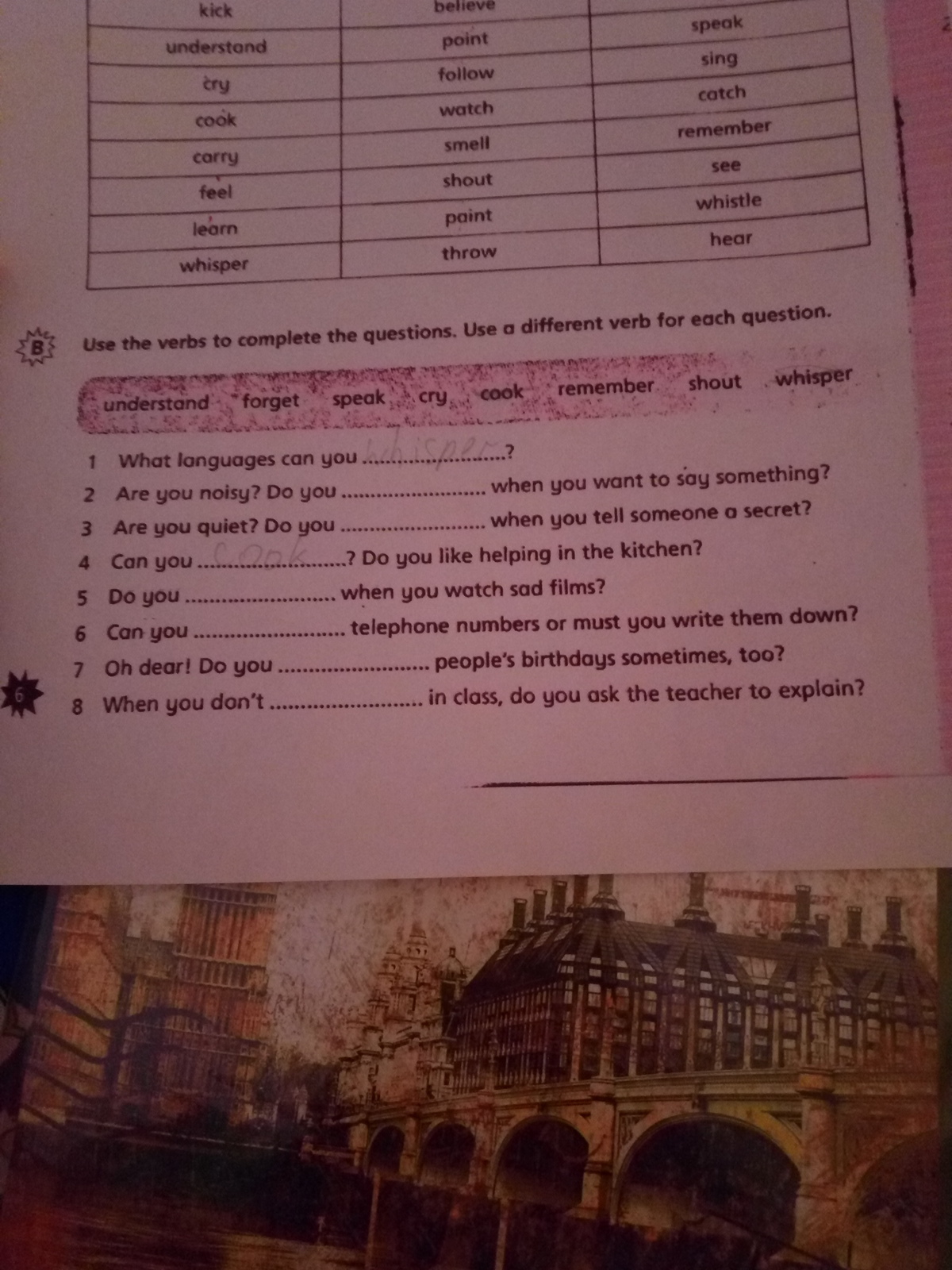 Speak, shout, whisper, cook, cry, remember, forget, understand