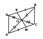 1) Відрізки AB і CD перетинаються у точці О і діляться цією точкою навпіл. На відрізку АС позначено точку М , а на відрізку ВD - точку К так , що АМ = ВК . Доведіть що точки M , O , K лежить на одній прямій.